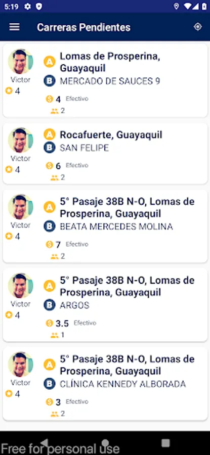 Racing receiver for the city of Guayaquil for MovilCar drivers. Review career requests and attend to the ones closest to you.