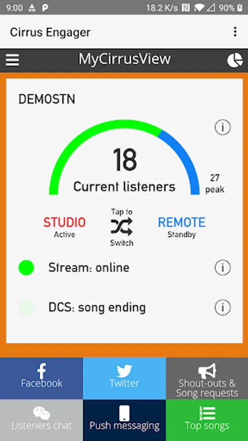 Stay engaged with your listeners 24/7 from any device with the Cirrus Engager. You can send push notifications to listeners via the mobile streaming apps, receive and listen to shoutouts submitted by listeners for on-air playback, chat in real-time, monitor your stream’s health, and much more.