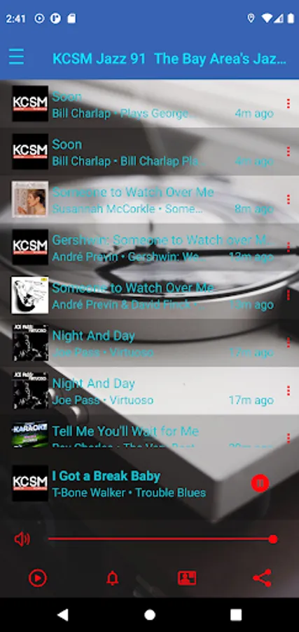 KCSM-FM Jazz 91.1 - “The San Francisco Bay Area’s Jazz Station” Bop, Cool, Latin, Mainstream, Blues, Swing, Traditional, World and beyond. Handpicked by veteran announcers from the largest Jazz Radio library in the USA 24 /7/365. Broadcast from the College of San Mateo campus in the San Francisco Bay Area. Featuring our mobile device friendly HE-AACv2 stream for excellent sound quality! Real jazz, all the time and commercial free too!