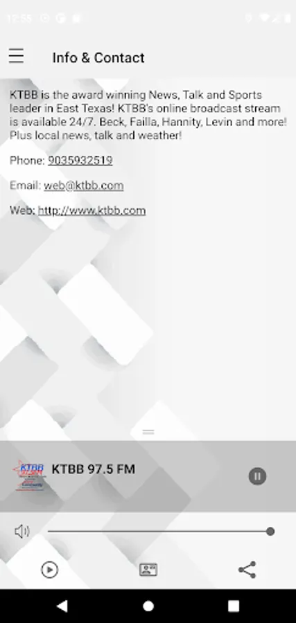 KTBB – 97.5 FM and 600 AM – is East Texas’ only local news radio. Because KTBB is the only locally-owned, locally-managed and locally-committed broadcast station in the Tyler-Longview market, East Texans know to count on KTBB for what’s in the news and what’s on their minds. KTBB combines its local news and air staff with the top syndicated radio talk shows in the country.