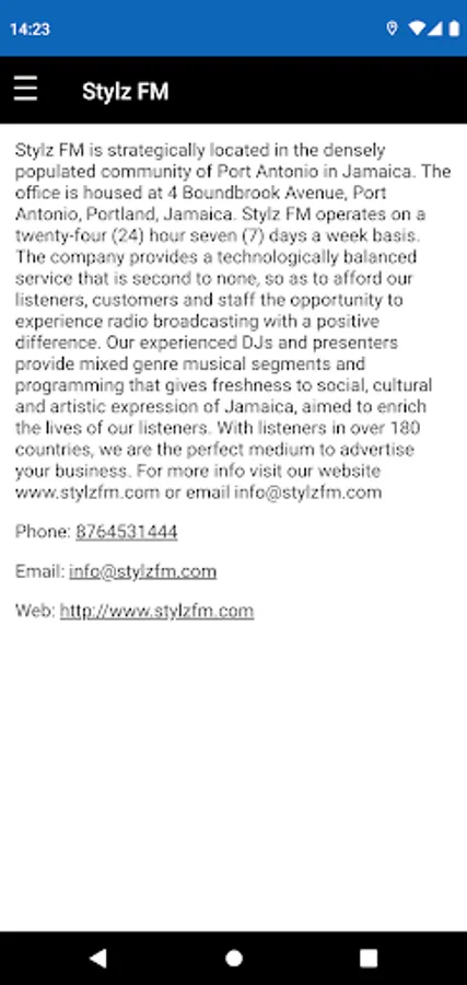 Stylz FM is strategically located in the densely populated community of Port Antonio in Jamaica. The office is housed at 4 Boundbrook Avenue, Port Antonio, Portland, Jamaica.