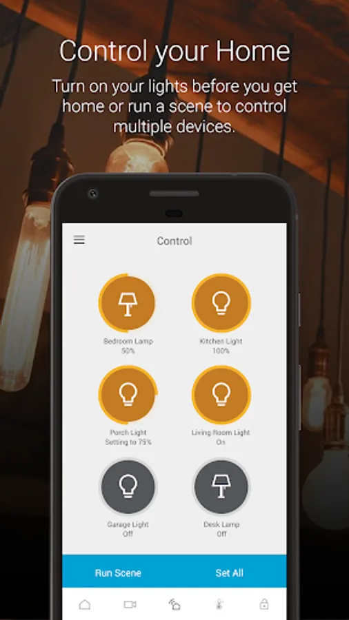 Enjoy full interactive home control including lights, locks, cameras, thermostats, garage doors, and other connected devices.