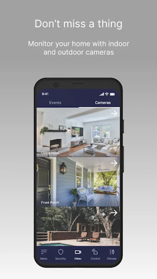 Receive real-time alarm status and arm or disarm your security system remotely. Get instant alerts in the event of a security alarm, or simply to be notified when your family arrives home.
