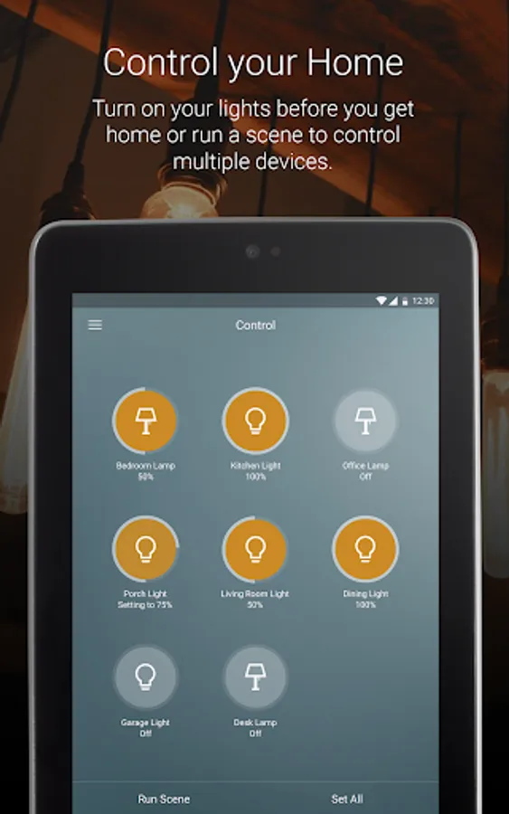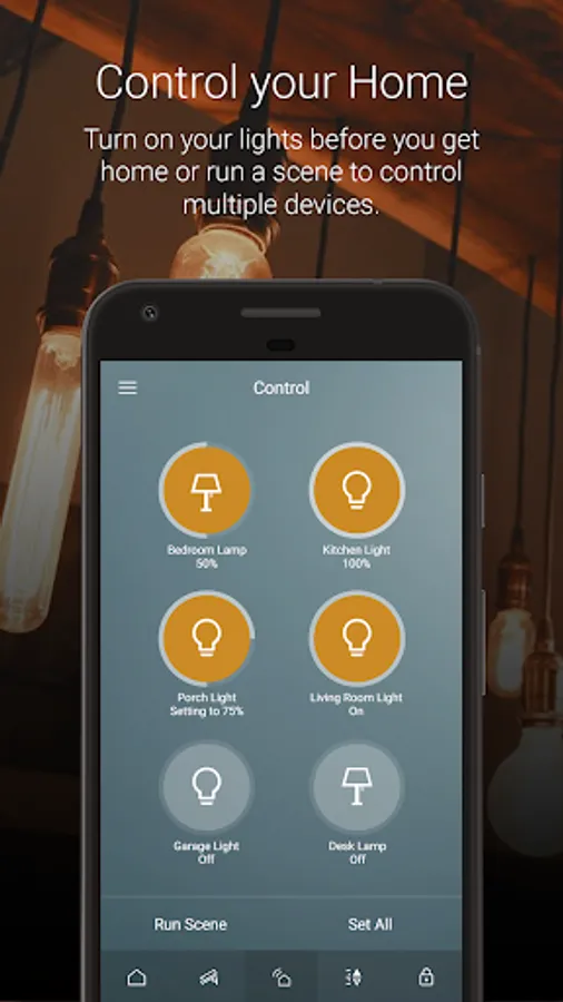 Enjoy full interactive home control including lights, locks, cameras, thermostats, garage doors, and other connected devices.