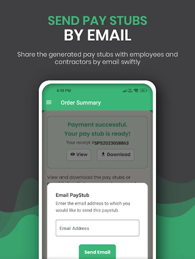 3️⃣ Download or send the pay stub by email to employees and contractors.