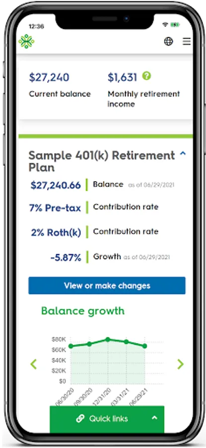 Availability of features may vary based on your employer and plan. Account data shown in screenshots is shown for illustrative purposes only.