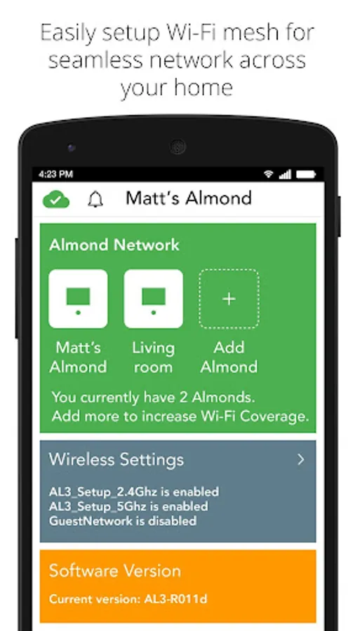 The free Almond app works with Almond+, Almond-2015 and Almond 3. These Almond devices make home Wi-Fi easy with their innovative touchscreen access and Wizard with step-by-step instructions. The intuitive Almond app makes it easy to monitor, control and secure your Smart Home and Wi-Fi Network. With the Almond app, push notifications tell you in real time who’s on your network and lets you block them. The app also lets you manage scenes that can be activated from Amazon Alexa. The app also gives you easy and convenient control of your home security system, Nest thermostat, Philips Hue lights, many ZigBee and Z-Wave devices from leading smart home manufacturers.