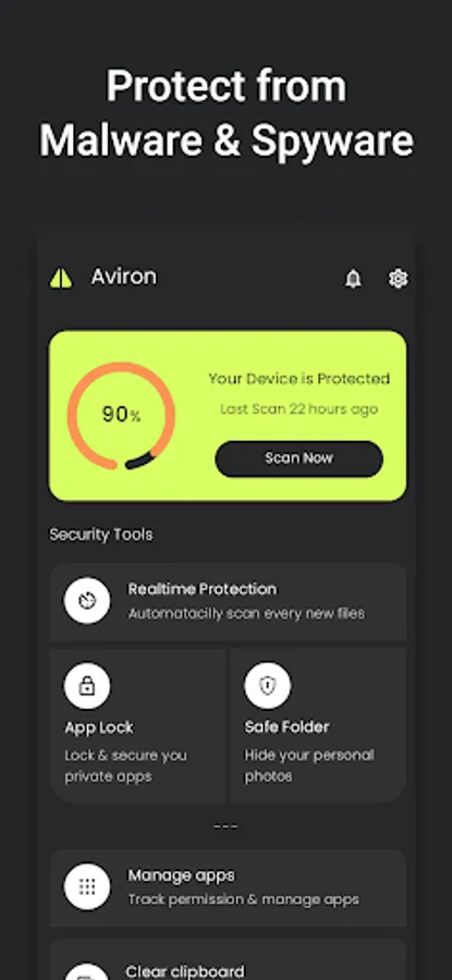 Background Scan: Aviro will automatically detect malware, viruses, spyware, ransomware and Trojans for any new apps or new files in background