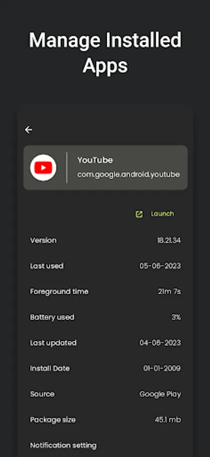 App Manager: With app manager, you can easily view and control the apps installed on your device. You can uninstall unwanted apps, clear cache and data, and free up storage space. You can also monitor the battery, data, and memory usage of each app.