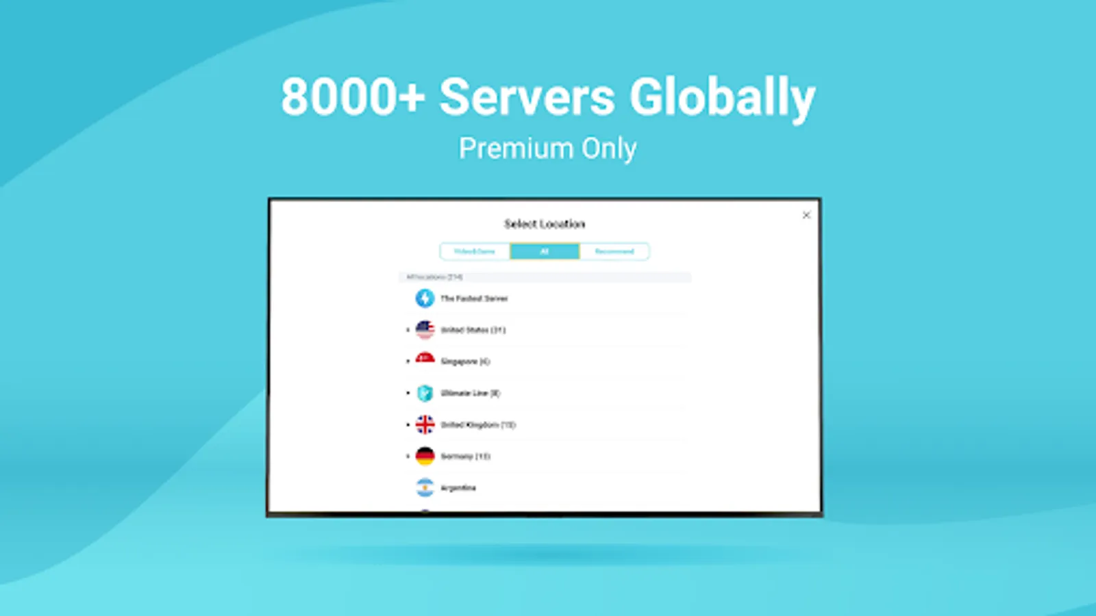 ★ 8000+ Servers Around 50+ Global Locations(Only premium can access all)