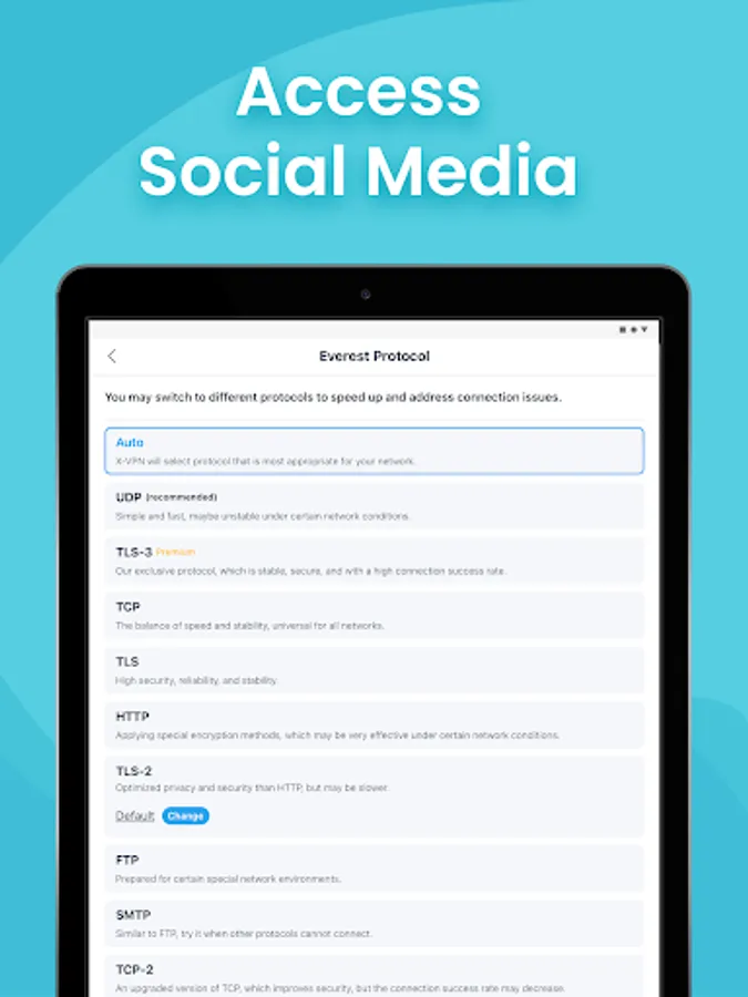We provide several functional security tools including Kill Switch and Private Browser. With Kill Switch on, all internet will be disabled if X-VPN disconnects. The private browser allows you to browse the Web without leaving traces such as cookies, browsing history, or any other tracking features.