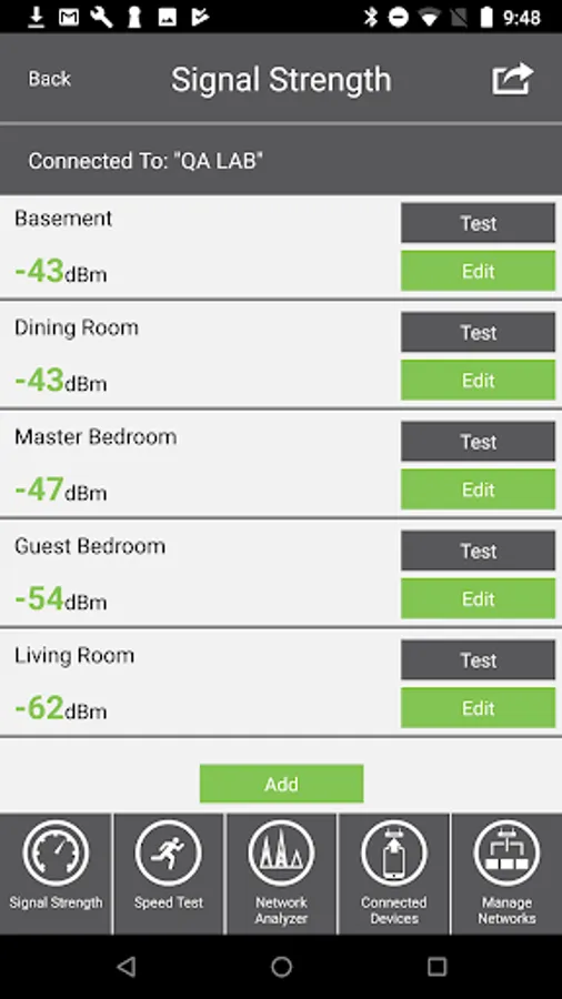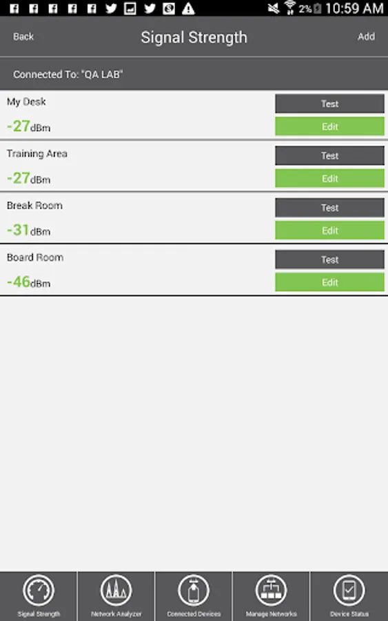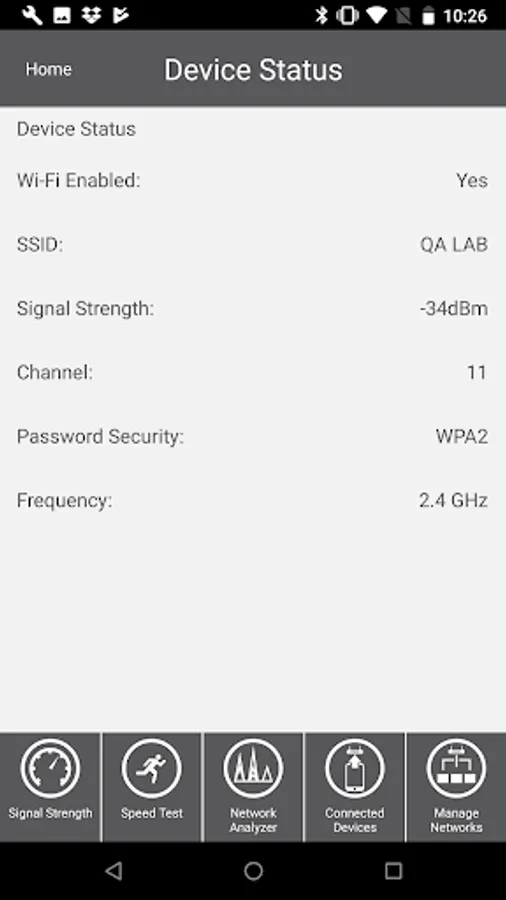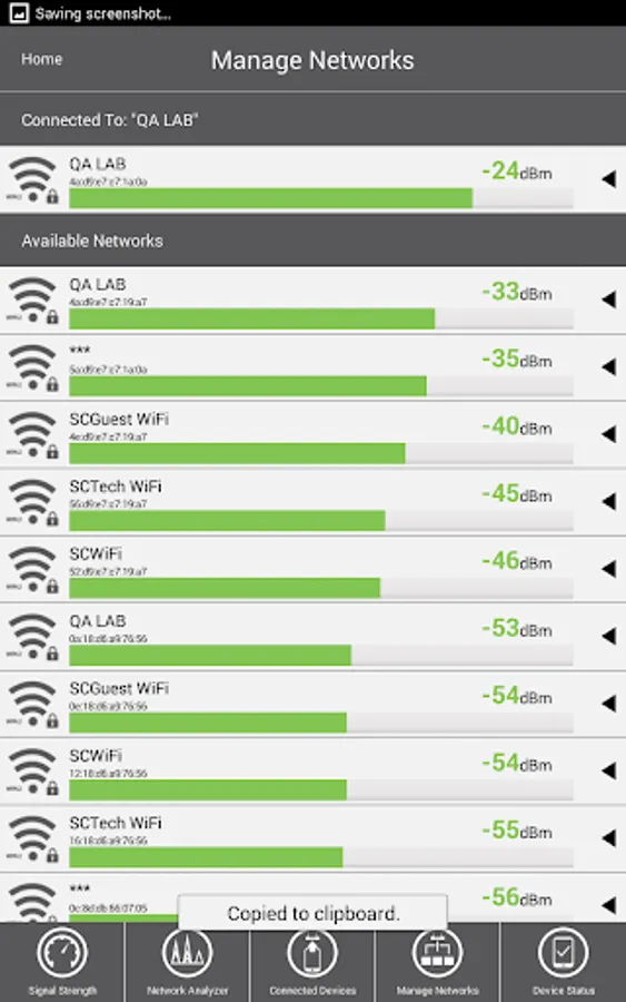 • We also allow you to manage your networks right from the app! See a list of available networks sorted by signal strength, confirm they have the safest password authentication type, and connect through our Manage Networks section.