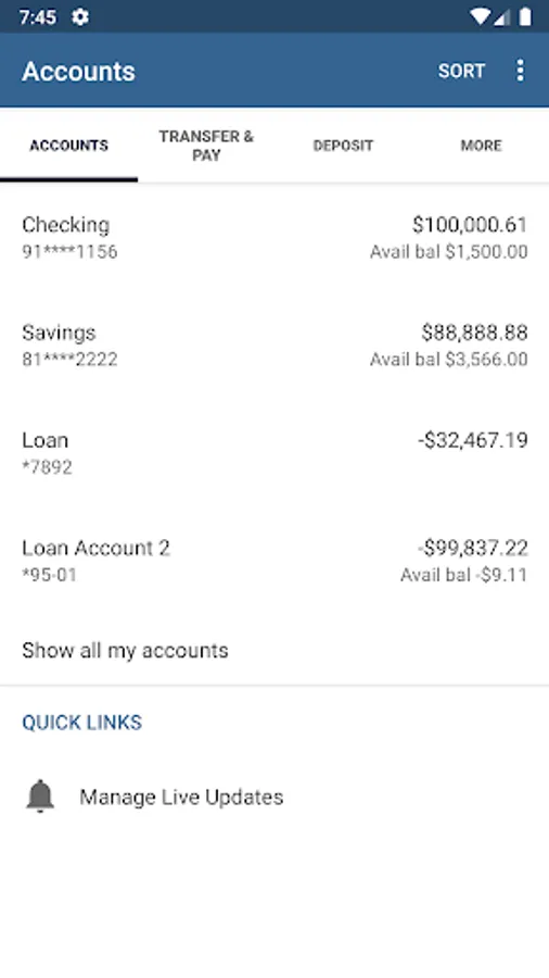 • Transfer money between accounts