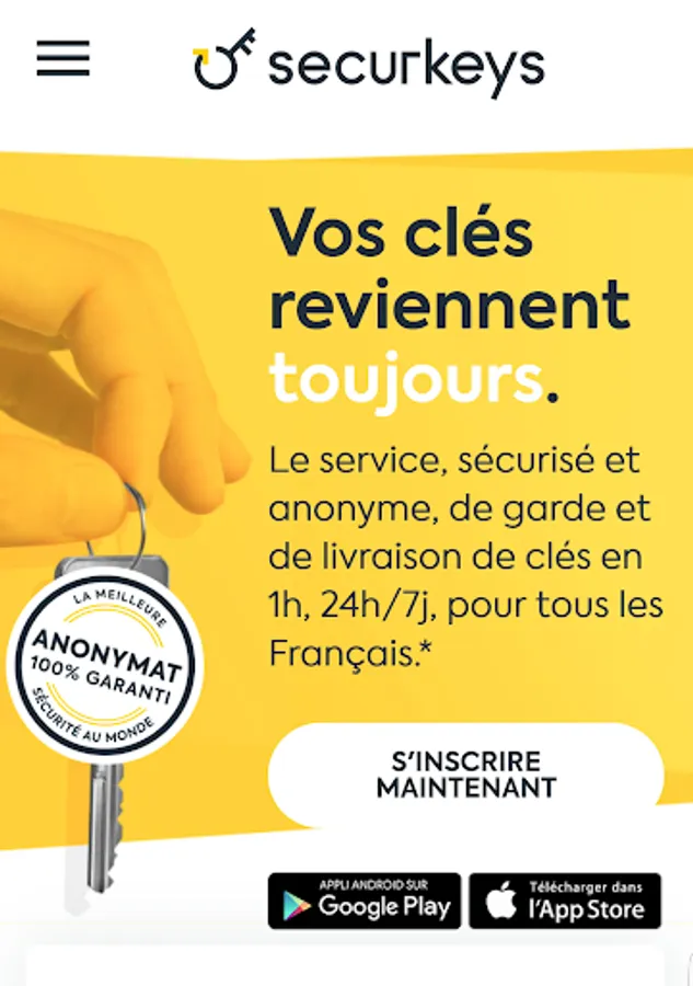 Anonymous custody and delivery, of your double keys, in 1 hour everywhere France *, 24h / 7d.