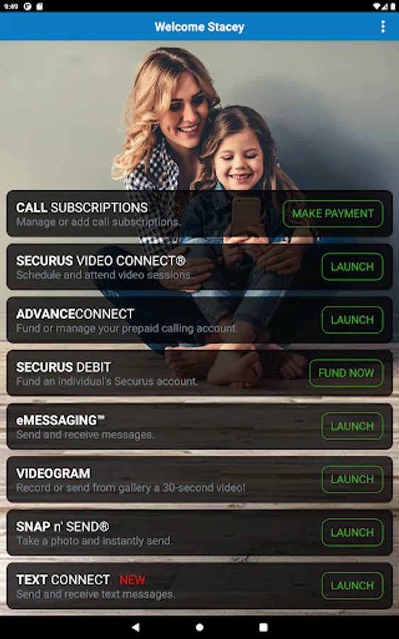 The app provides the following features to easily setup and manage our incarcerated connection services: