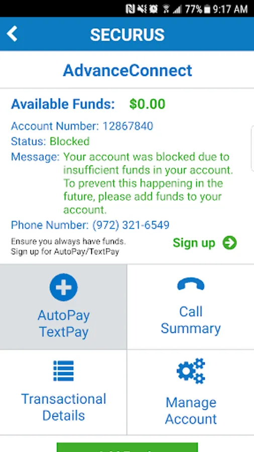 AdvanceConnect – fund this account to receive calls to the phone numbers you choose from your contact. You can: