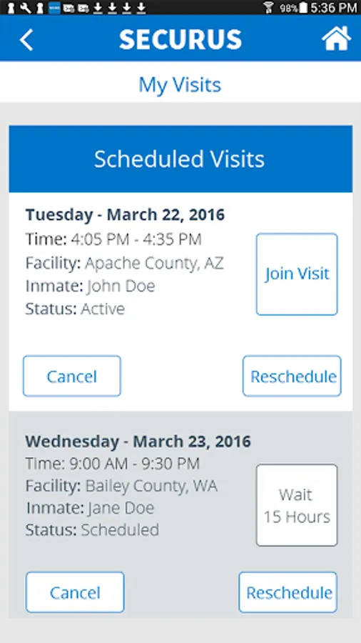• Enroll in Video Connect, schedule a video session with an incarcerated individual remotely from anywhere in the world where you have Wi-Fi or cellular data service at all Securus sites that offer Video Connect.
