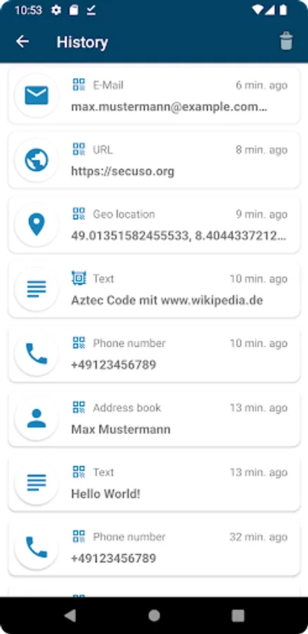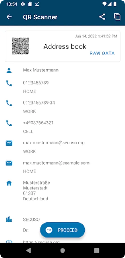 QR Codes become more and more important. In some areas they have even replaced the traditional barcode. A QR Code is able to store up to seven thousand characters and therefore is qualified for more complex content, e.g. vCards. Hence nowadays QR Codes can nowadays be found on nearly every advertisement poster and animate the user to scan it with his smartphone. Thus, it is no longer necessary take a hand written note, it is enough to scan the QR Code. Correspondingly, there are already many QR Code scanner apps available in the Google Play Store. It belongs to the Privacy Friendly Apps group developed by the research group SECUSO at Technische Universität Darmstadt. More information can be found an secuso.org/pfa