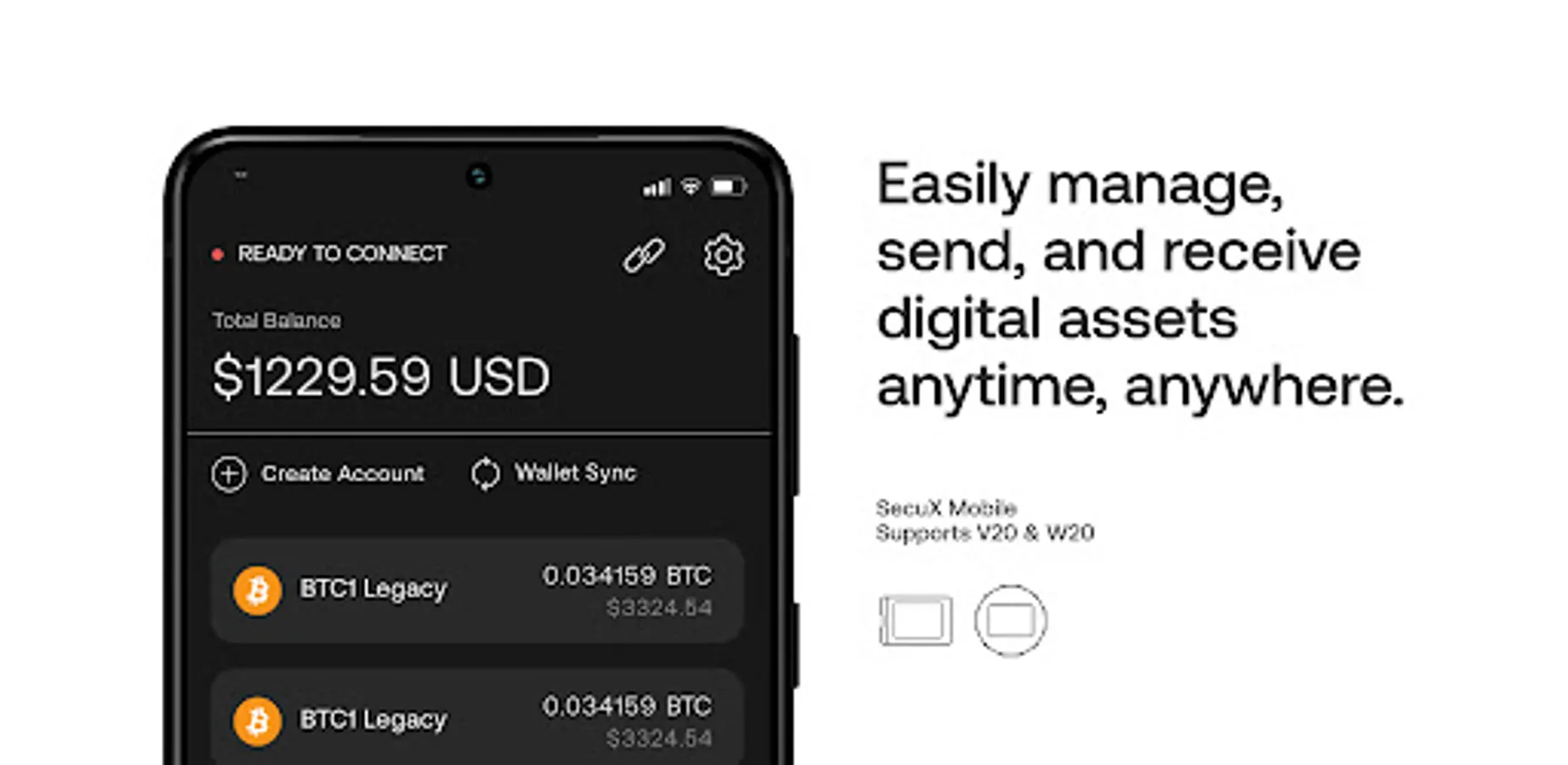 SecuX Mobile App is fully compatible with SecuX V20 and W20 hardware wallets via Bluetooth connection.