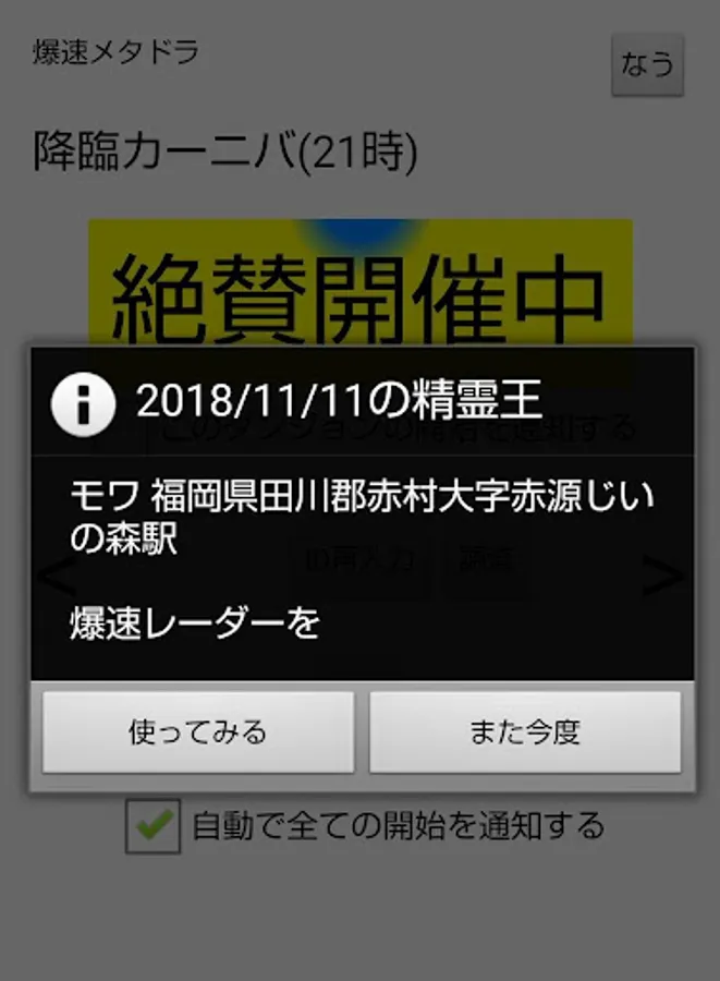・ If you press any button other than the button, the amount of stamina recovered until the event and the type of advent guerrilla will be displayed.