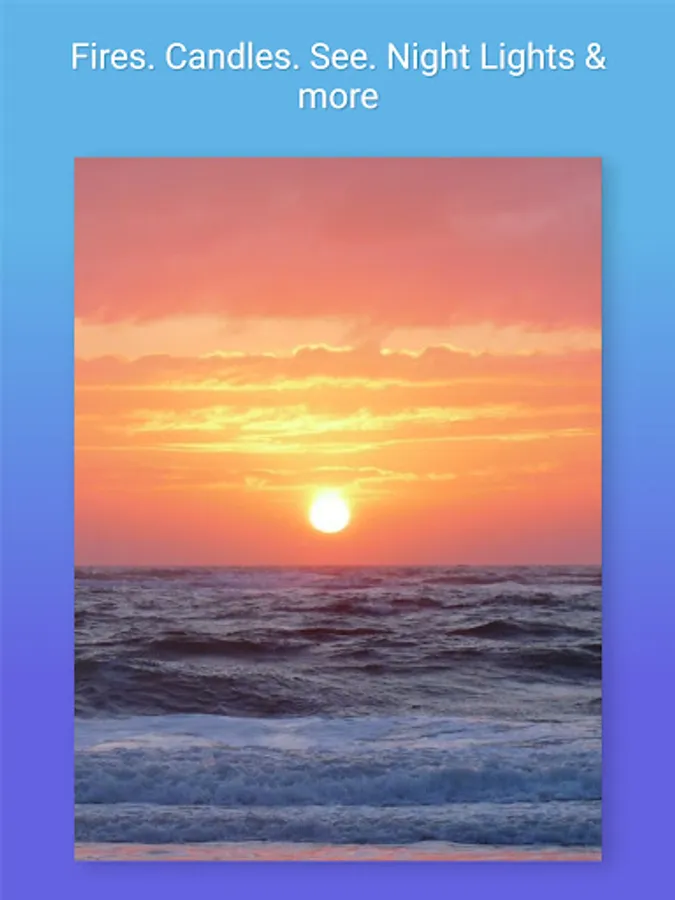 Sedate's unique videos are candle, fireplace, thunder, baby nightlight, lava lamp, rain and seaside. The team creates new animations with every new release. We allow you customize our nightlight screens by changing the flame of the candle, the intensity of the fireplace, the color of the ambient lava lamp, or any additional setting. The Sedate's sounds can also be adjusted or replaced with your own relaxing or sleep sound.