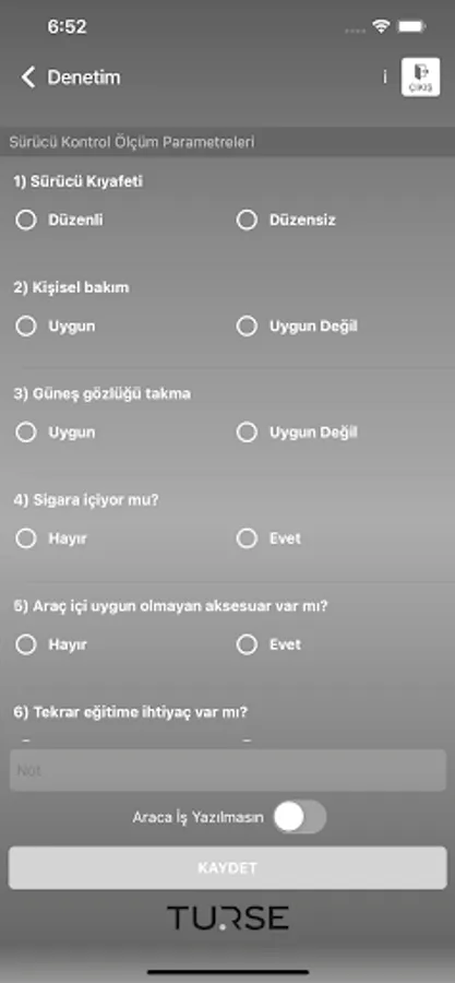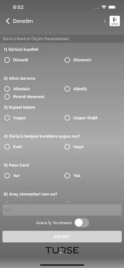 It is a Control application specially prepared for Turse by Proseca Bilişim.