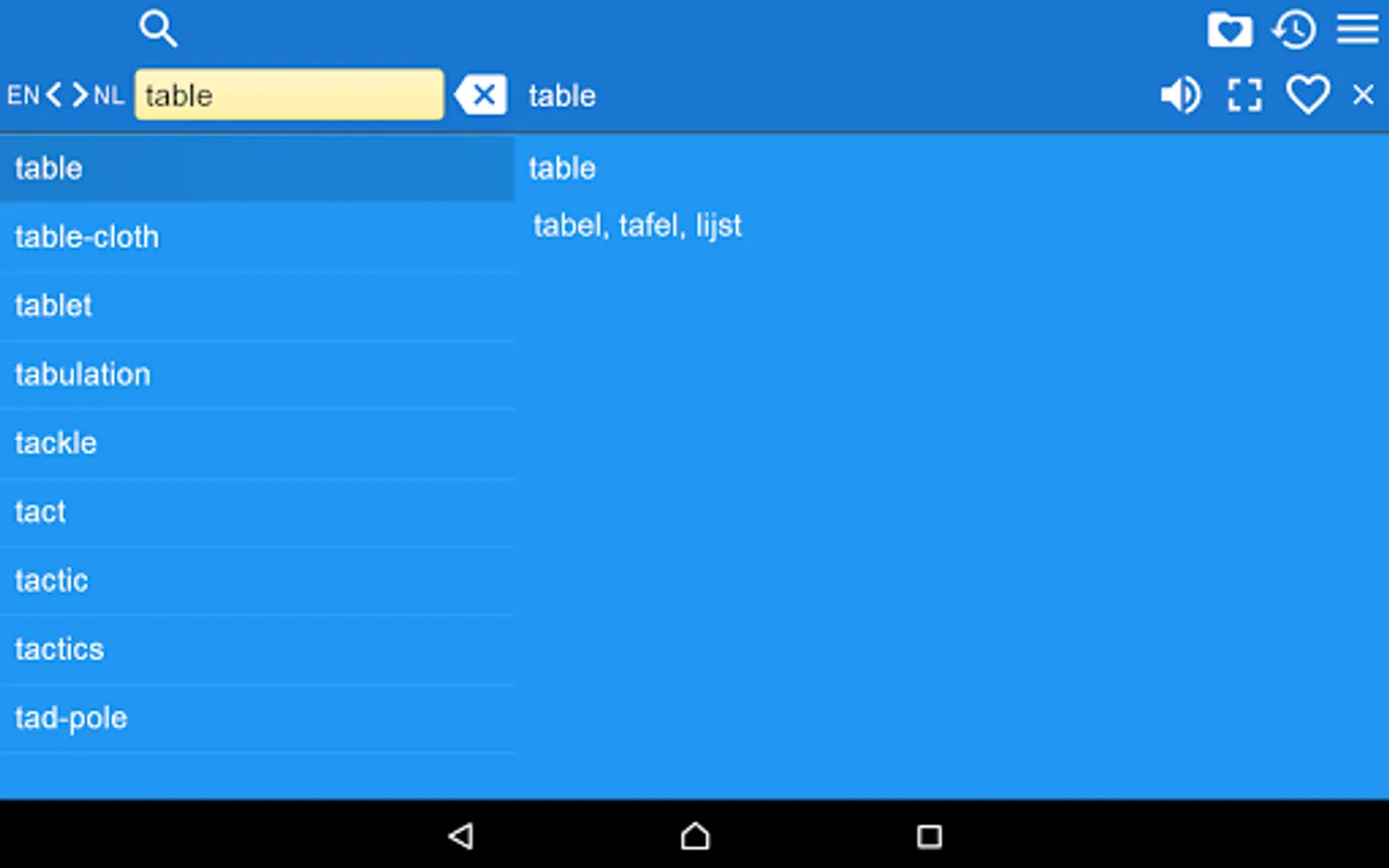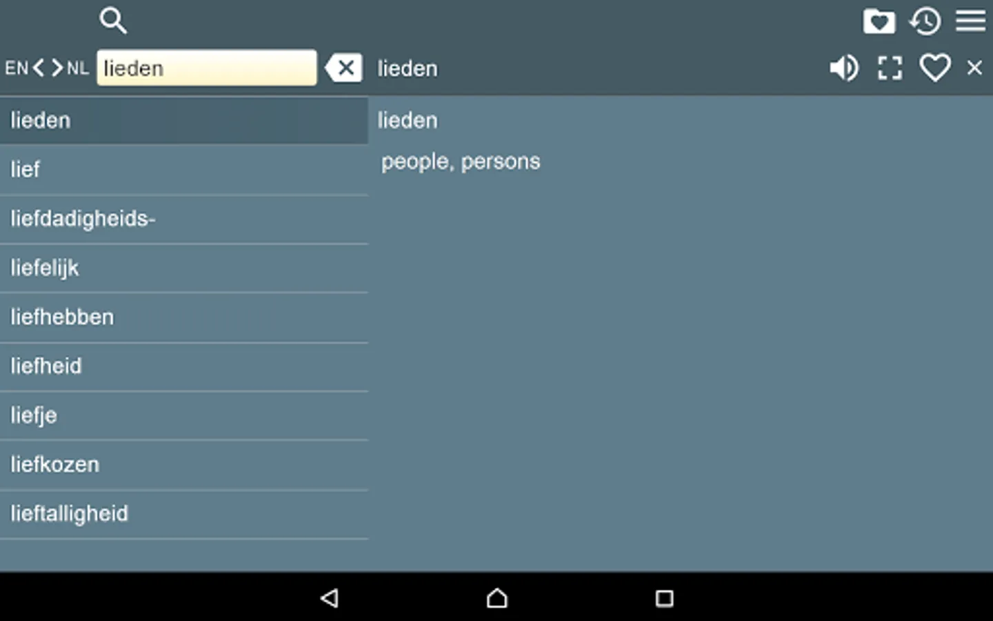 This is English - Dutch and Dutch - English Dictionary (Engels - Nederlands en Nederlands - Engels Woordenboek), containing 25000 translation articles. The Dictionary is OFFLINE and does not need the internet connection.
