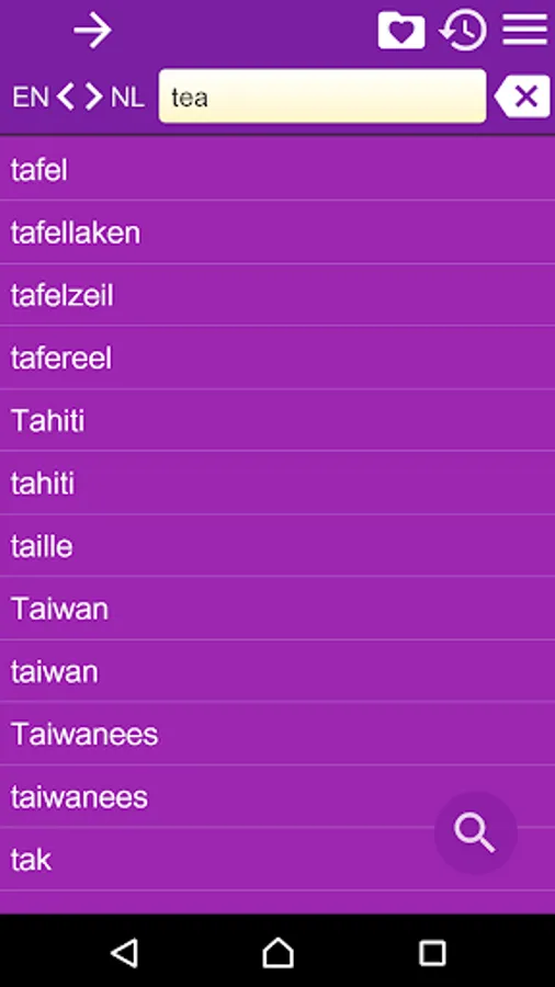 2. Favorites – you are able to add words to favorites list by clicking the “star” icon.