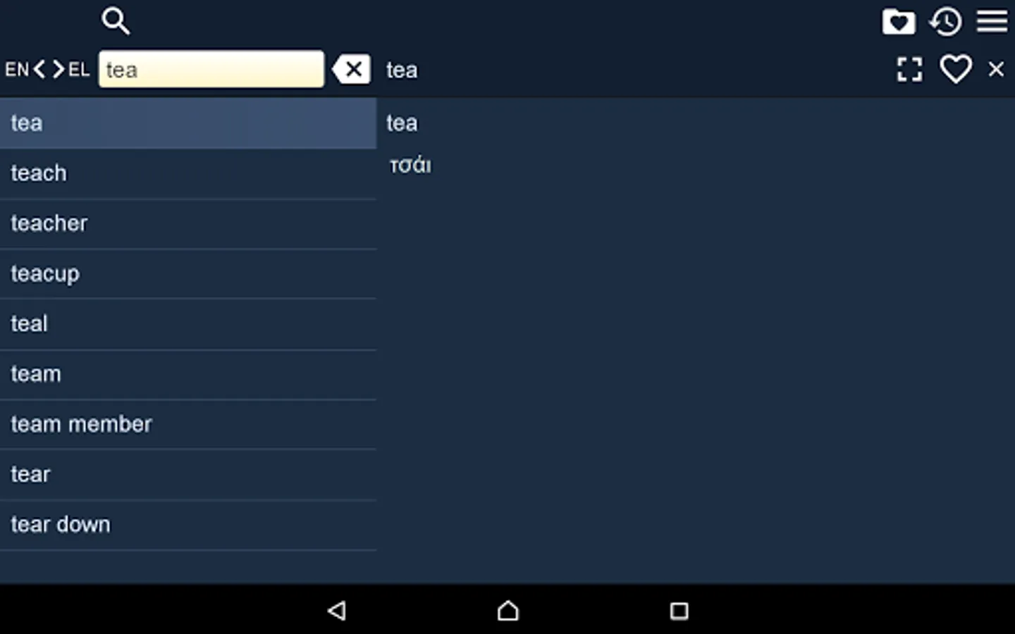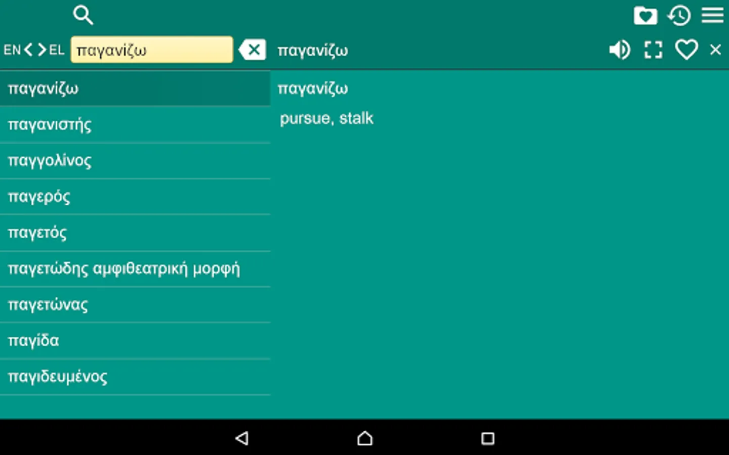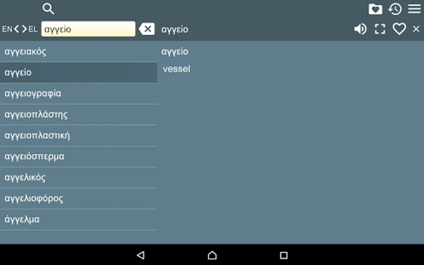 2. Αγαπημένα - μπορείτε να προσθέτετε λέξεις στα αγαπημένα σας κάνοντας κλικ στο εικονίδιο "αστεράκι".