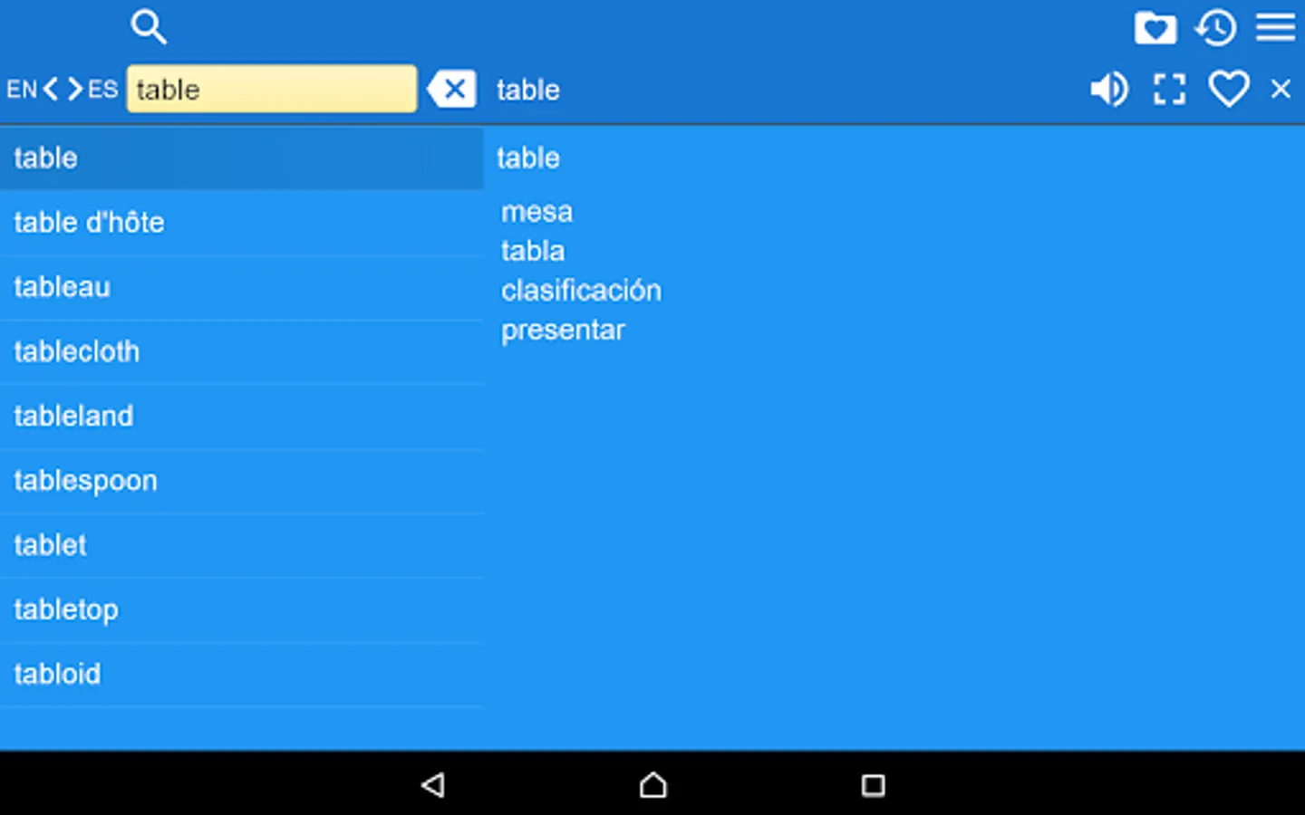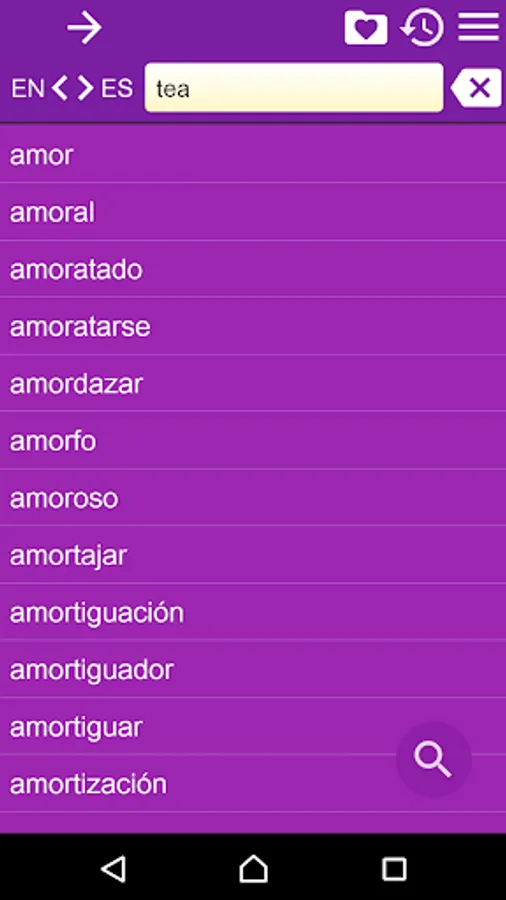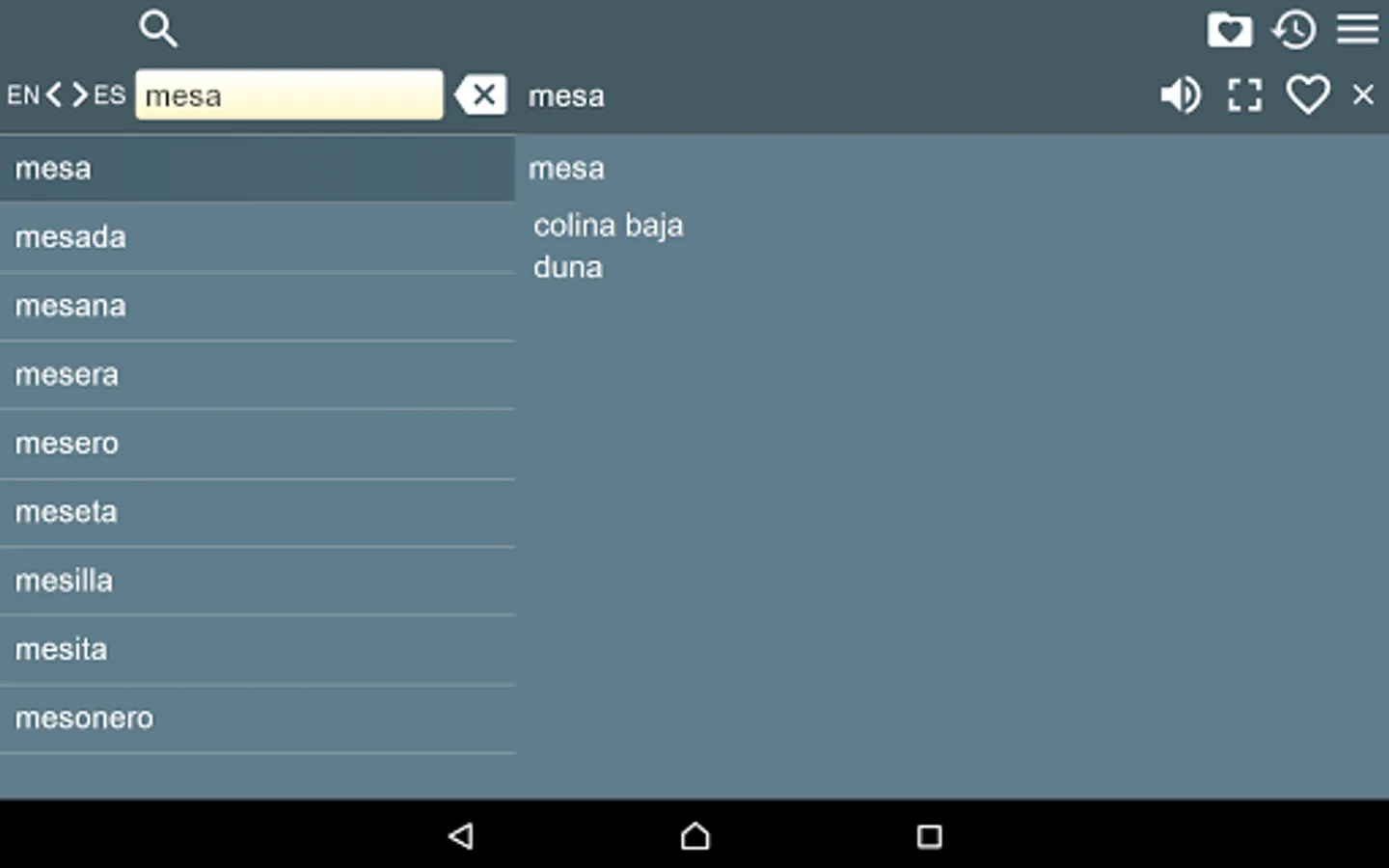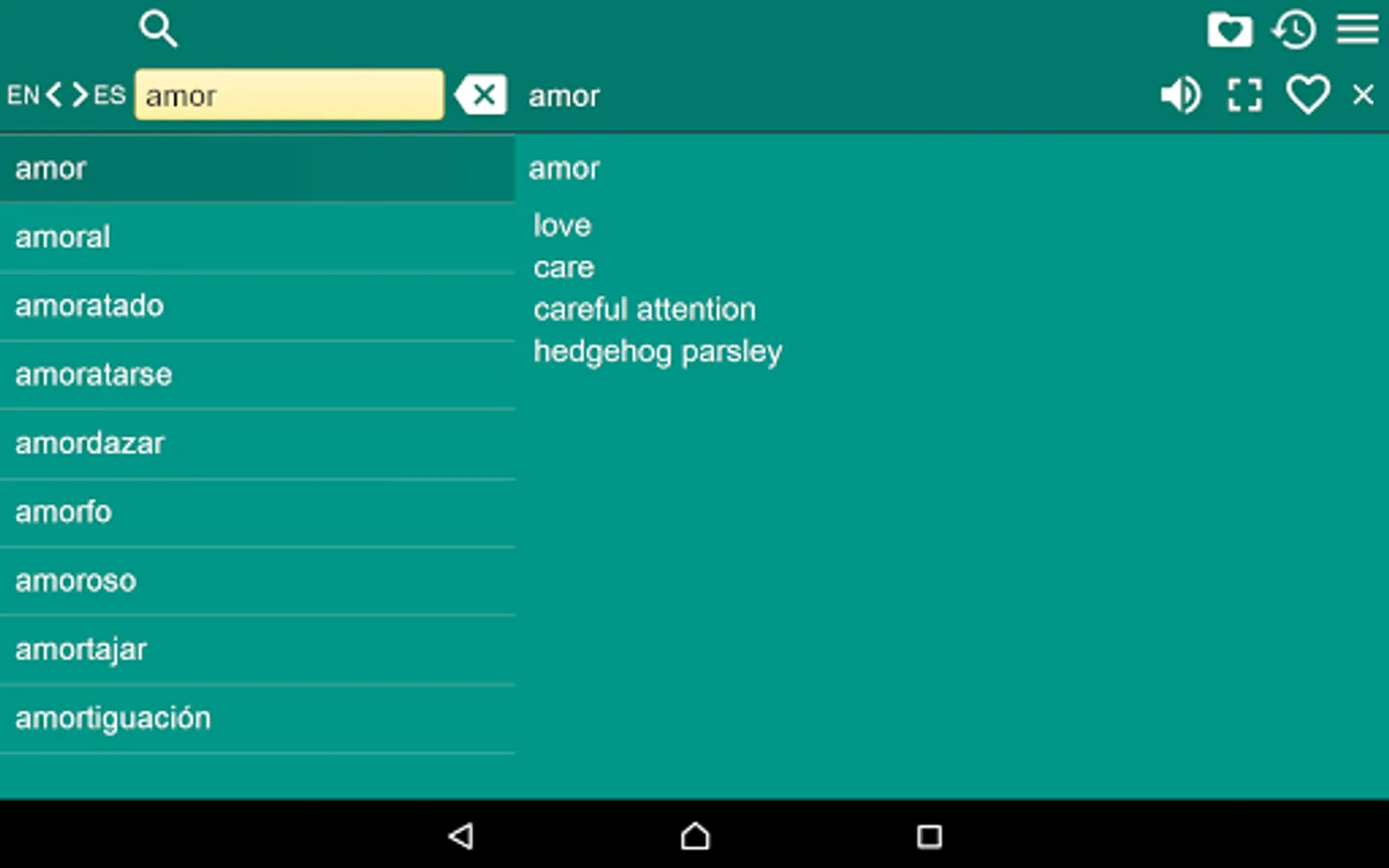 2. Favorites – you are able to add words to favorites list by clicking the “star” icon.