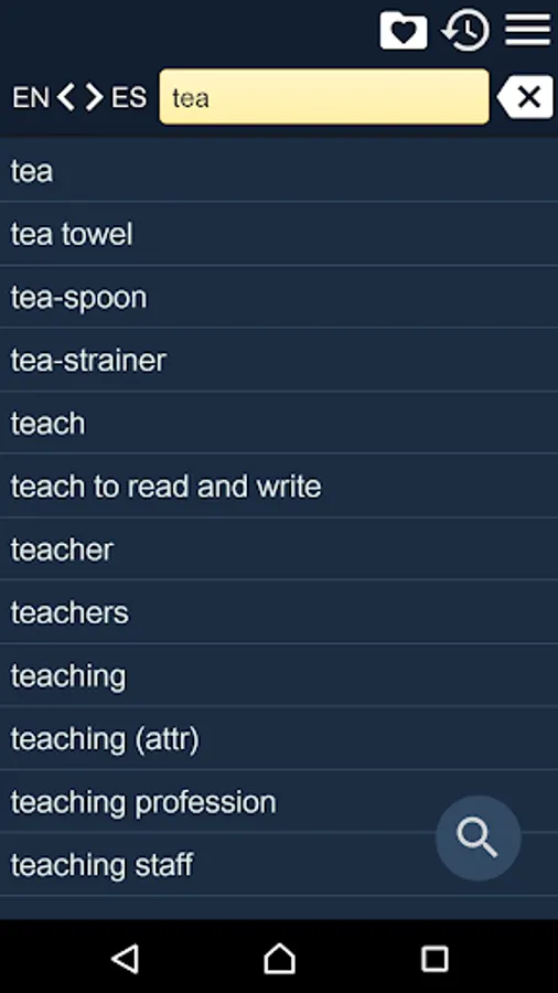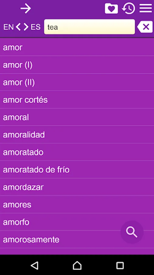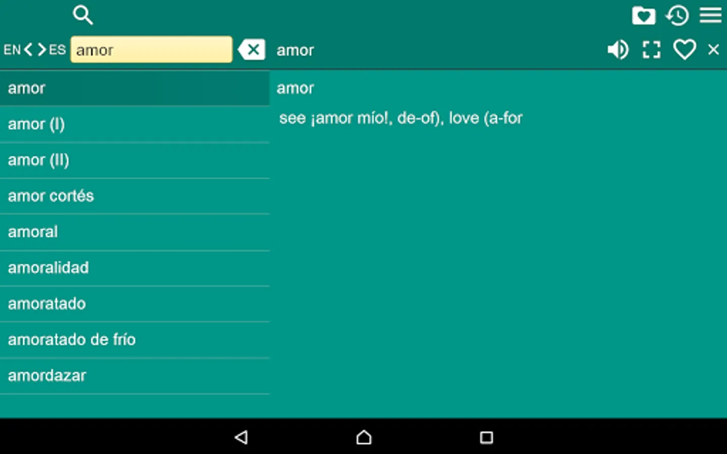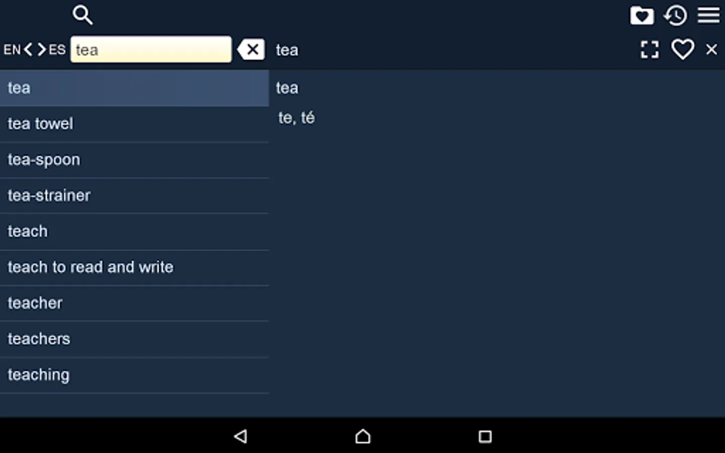 2. Favorites – you are able to add words to favorites list by clicking the “star” icon.