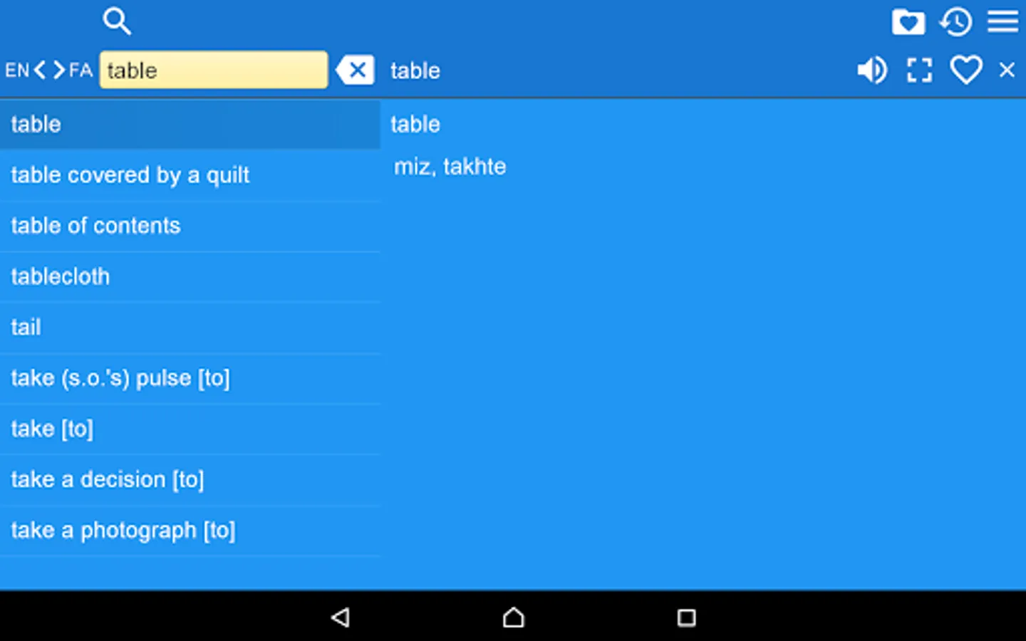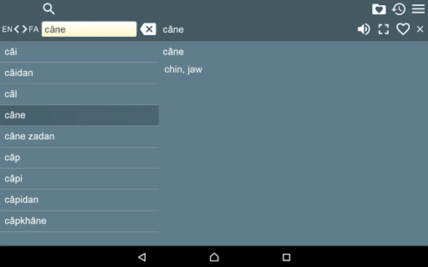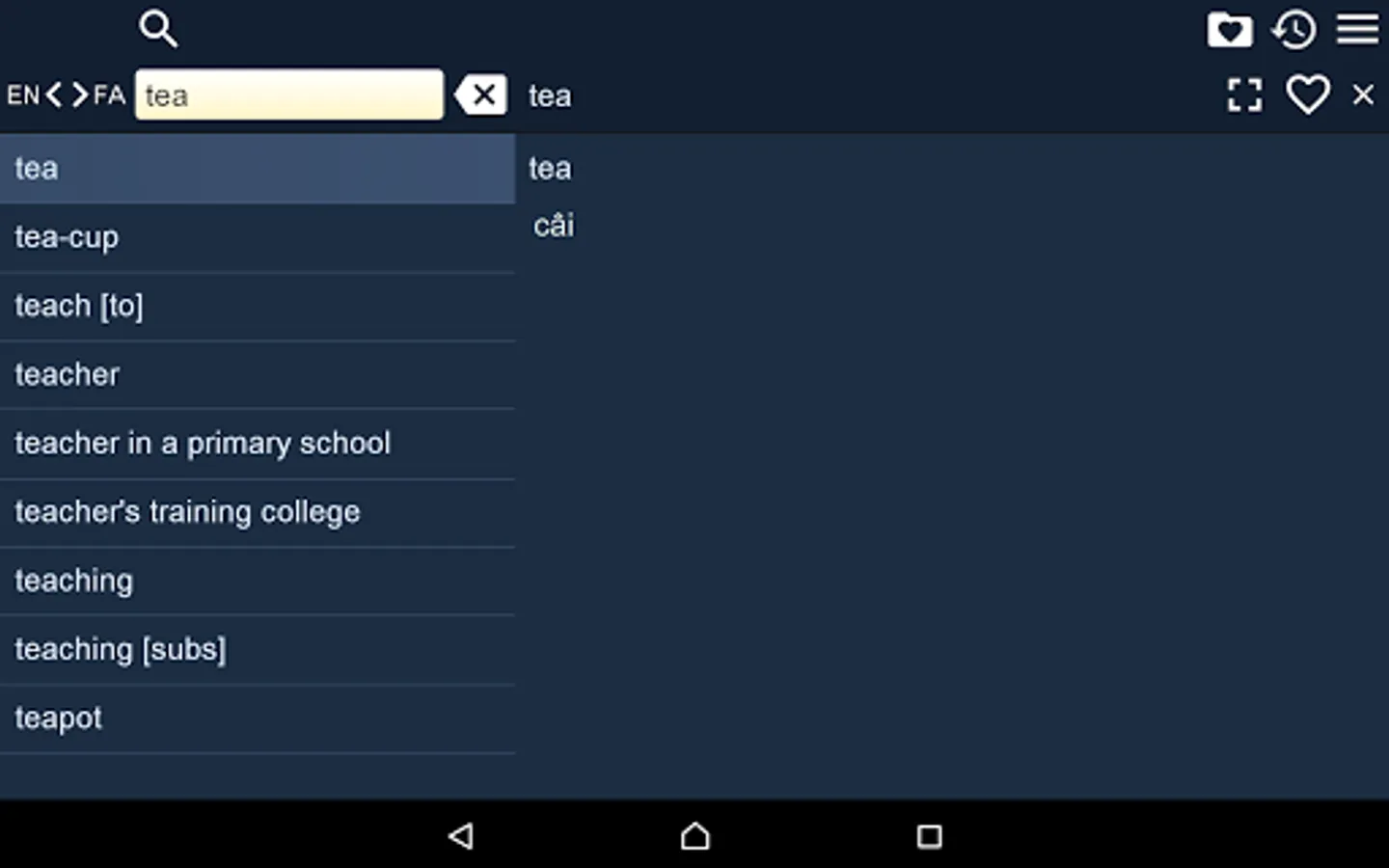 2. Favorites – you are able to add words to favorites list by clicking the “star” icon.
