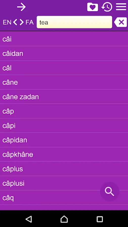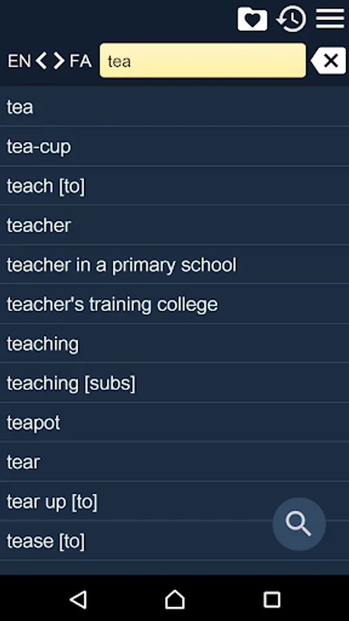 2. Favorites – you are able to add words to favorites list by clicking the “star” icon.