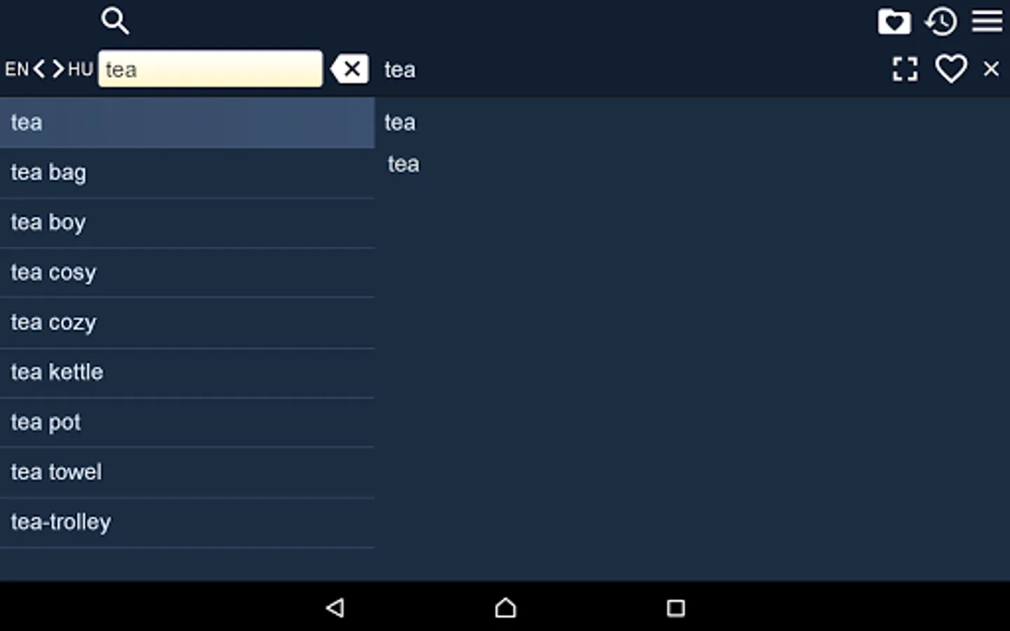 2. Favorites – you are able to add words to favorites list by clicking the “star” icon.