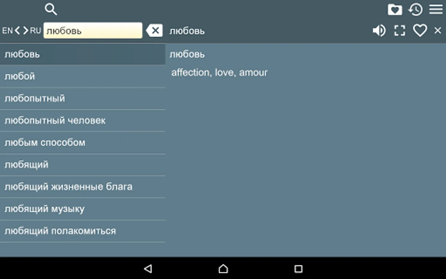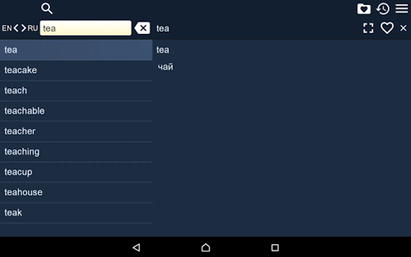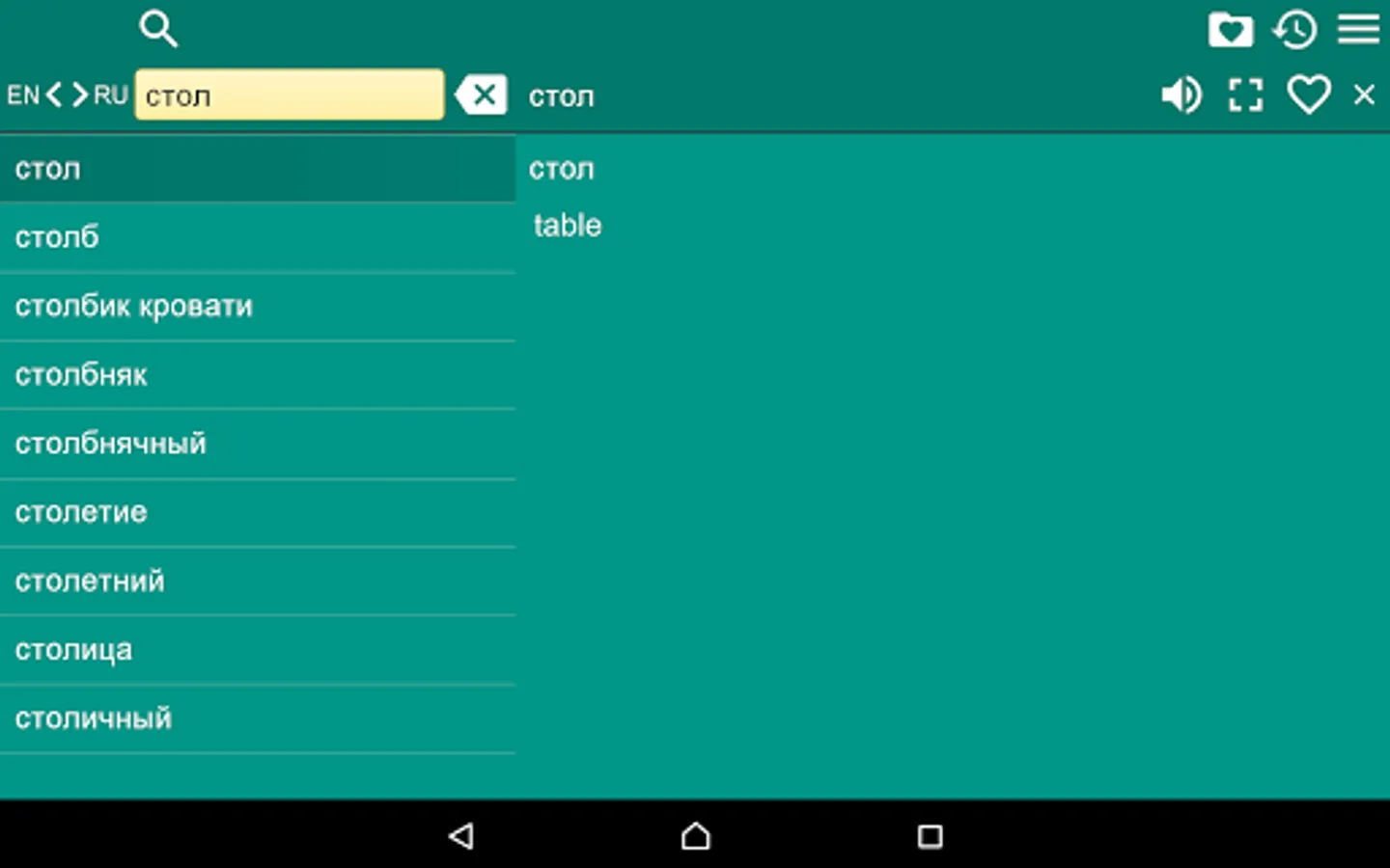 2. Favorites – you are able to add words to favorites list by clicking the “star” icon.