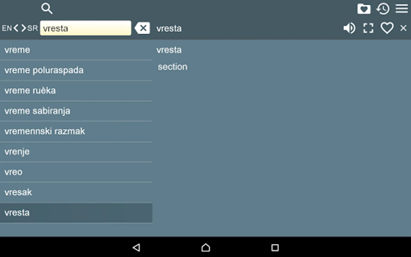 This is English Serbian Dictionary (Englesko-srpski rečnik), containing 40000 translation articles. The Dictionary is OFFLINE and does not need the internet connection.