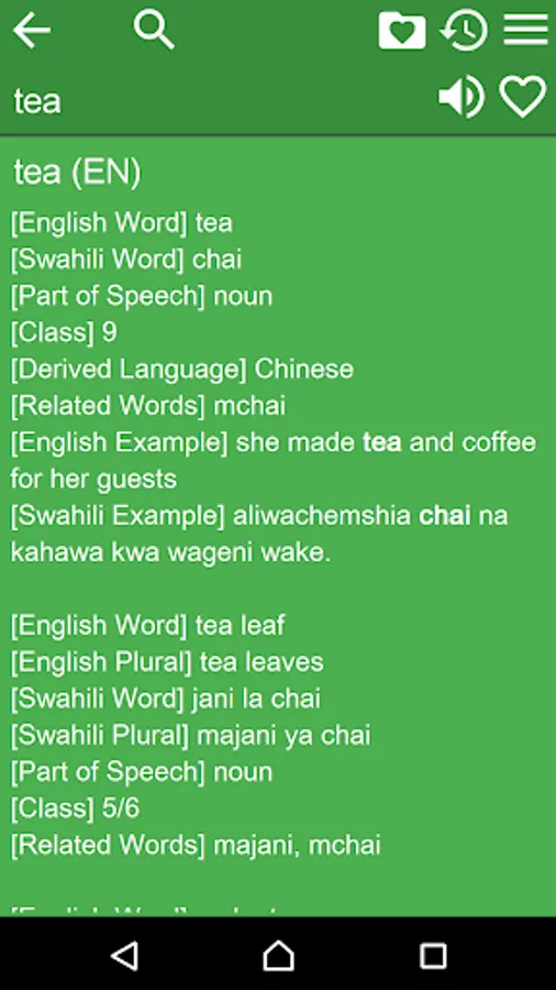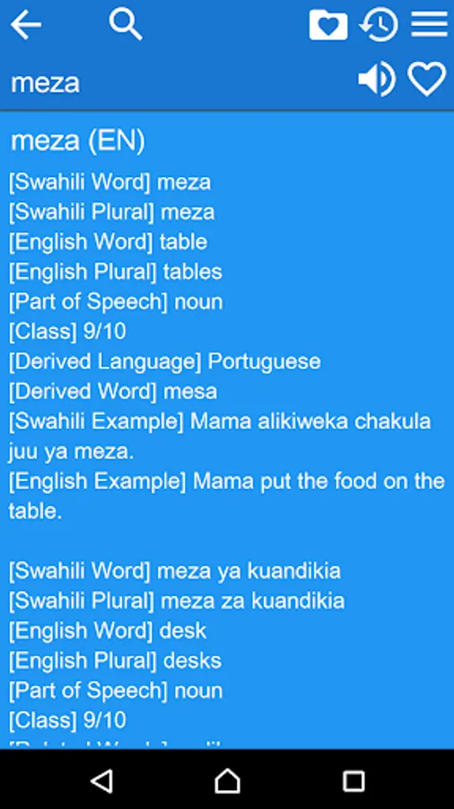 This dictionary provides OFFLINE access to the English-Swahili and Swahili-English content of kamusi.org. It contains 32,000 translation pairs. Search quickly in either direction, without a network connection!