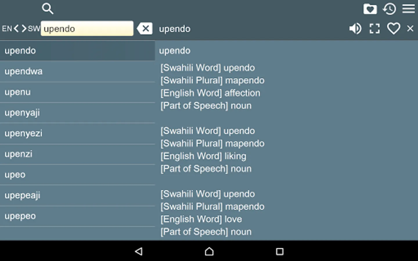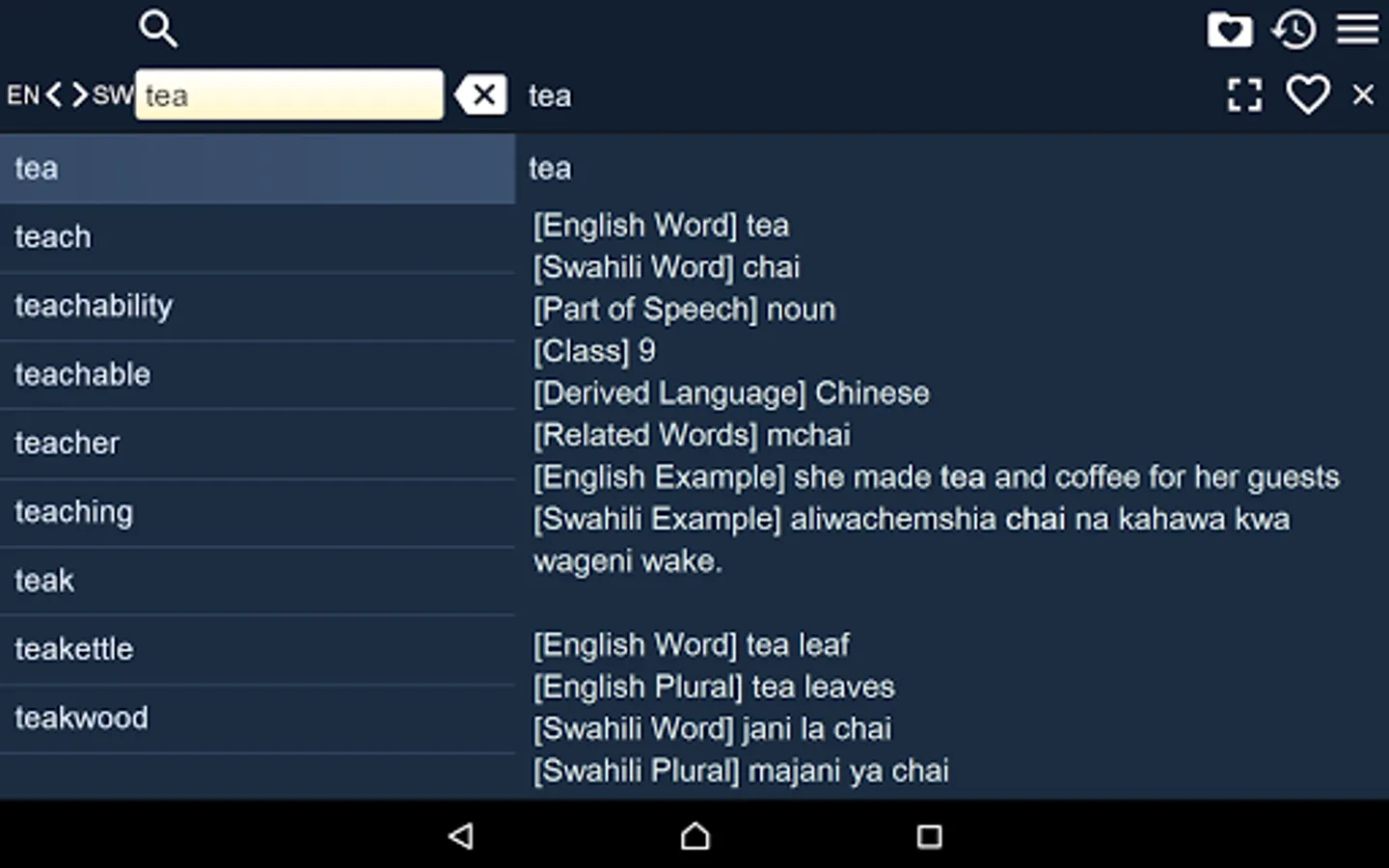 2. Favorites – you are able to add words to favorites list by clicking the “star” icon.