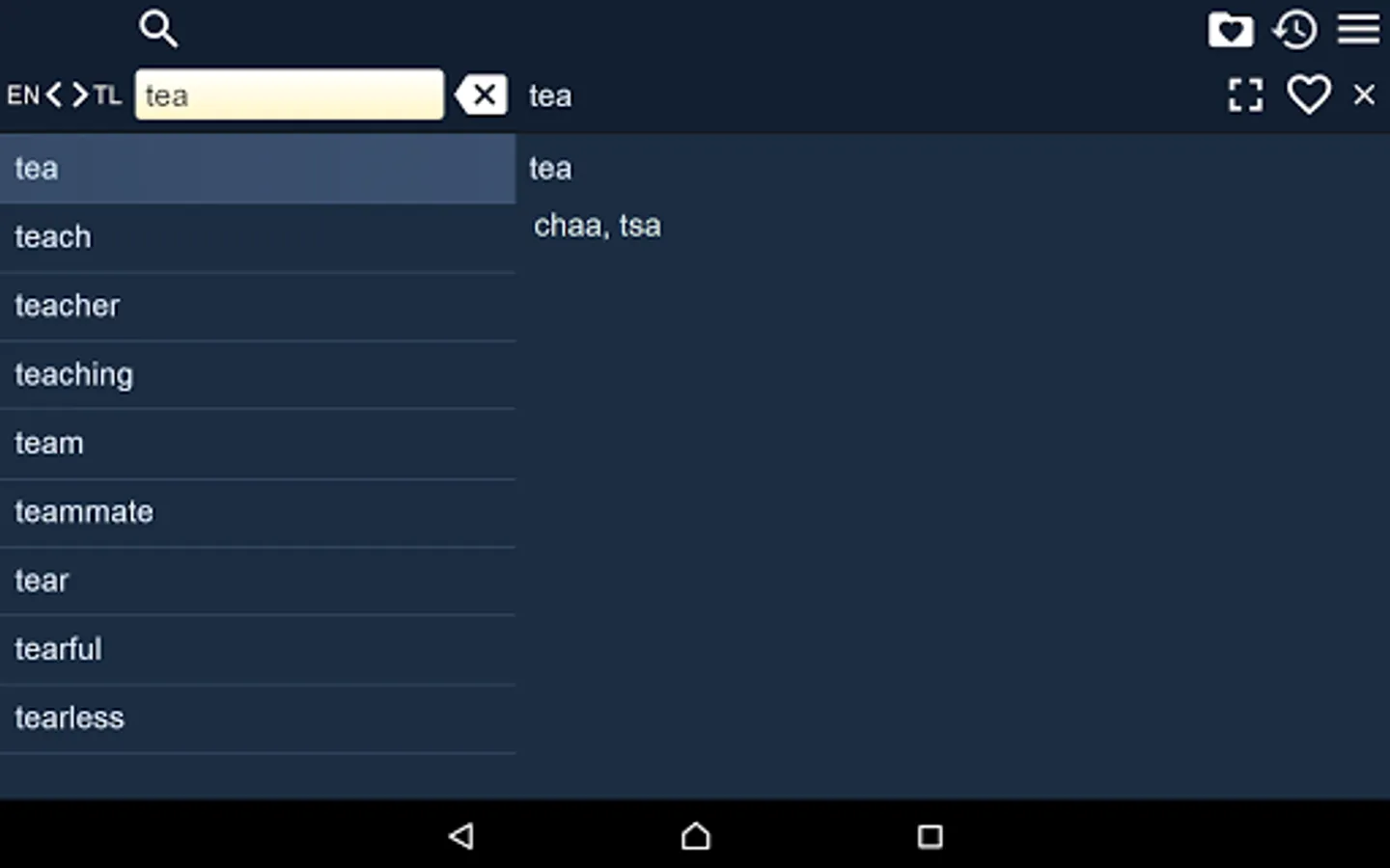 2. Favorites – you are able to add words to favorites list by clicking the “star” icon.