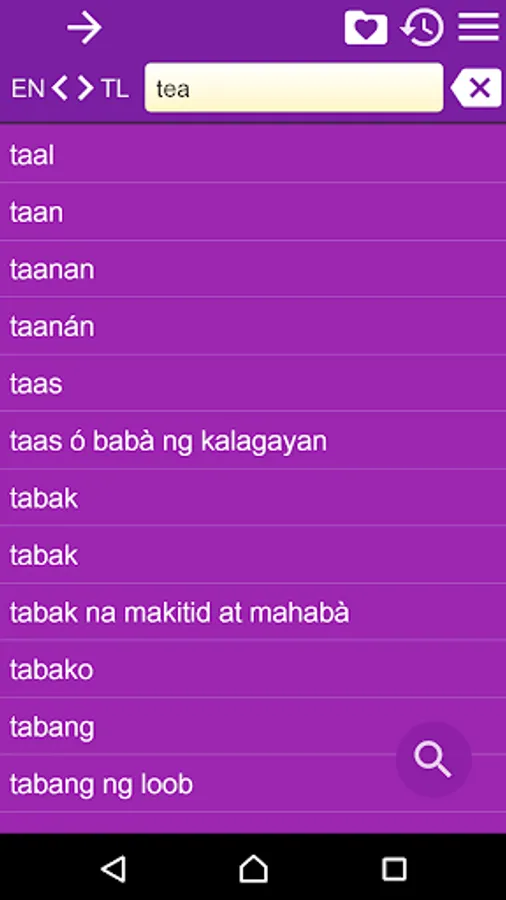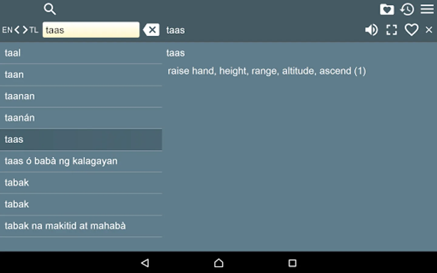 This is English - Tagalog (Filipino or Bisayan) and Tagalog - English Dictionary, containing 39000 translation articles. The Dictionary is OFFLINE and does not need the internet connection.