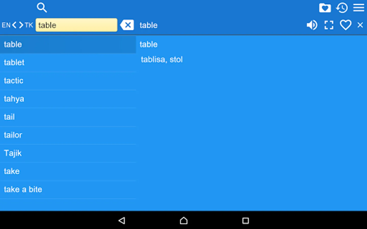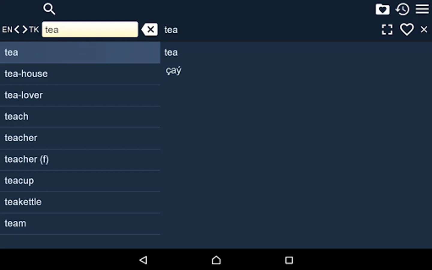 2. Favorites – you are able to add words to favorites list by clicking the “star” icon.