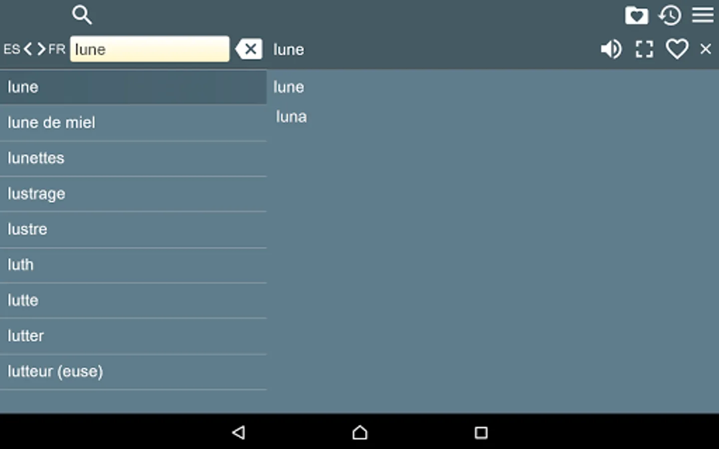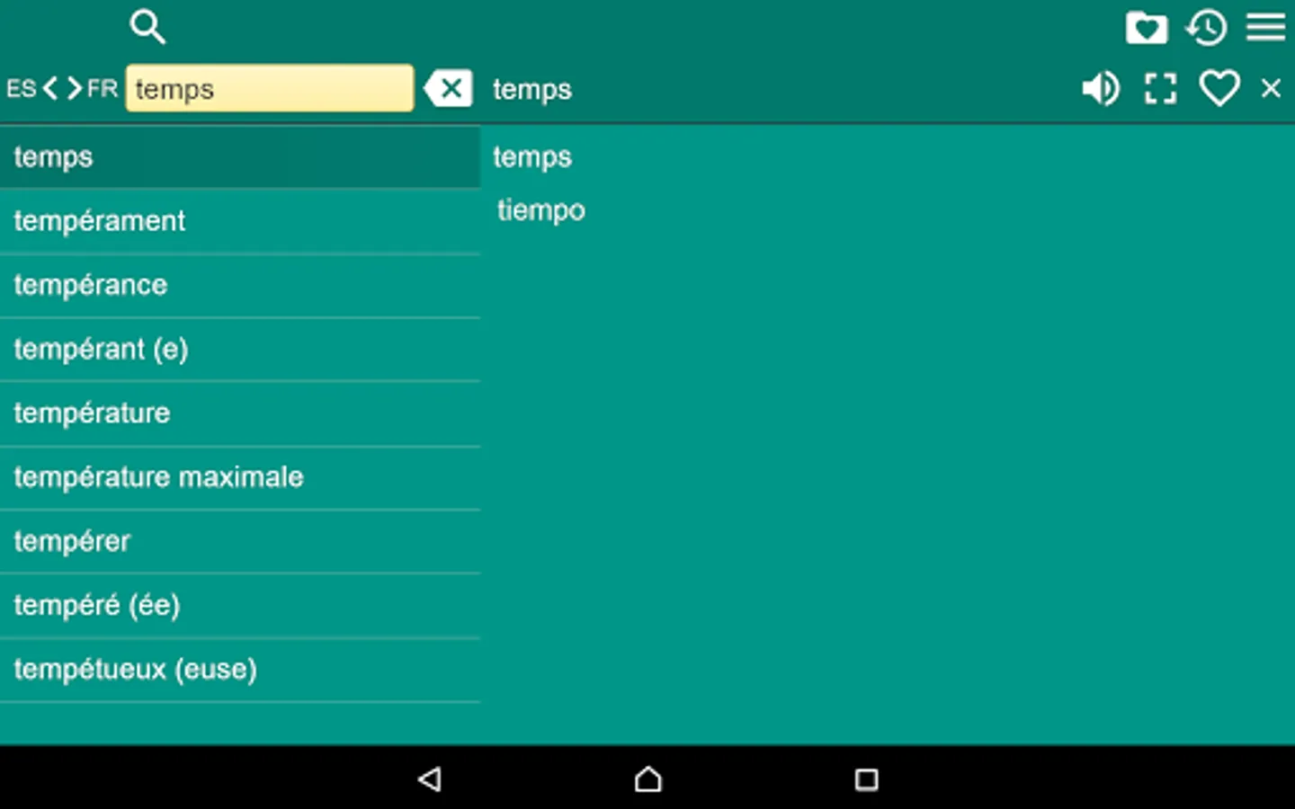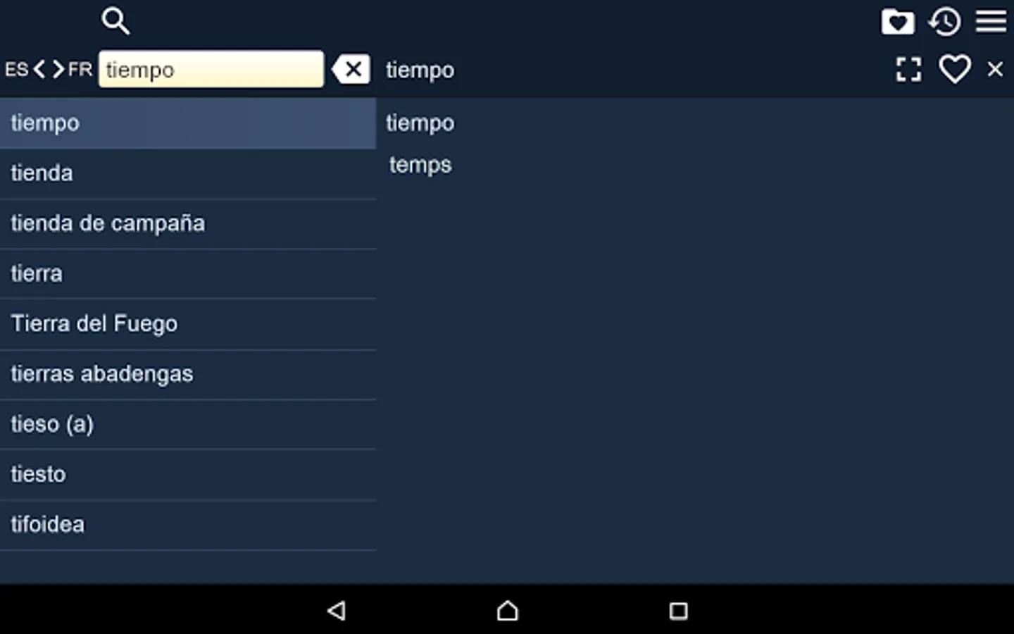 2. Favorites – you are able to add words to favorites list by clicking the “star” icon.