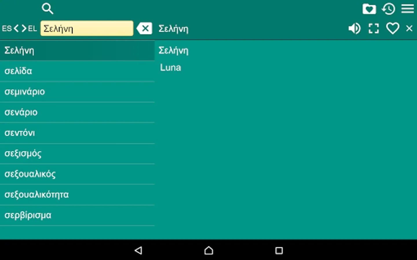 2. Favorites – you are able to add words to favorites list by clicking the “star” icon.