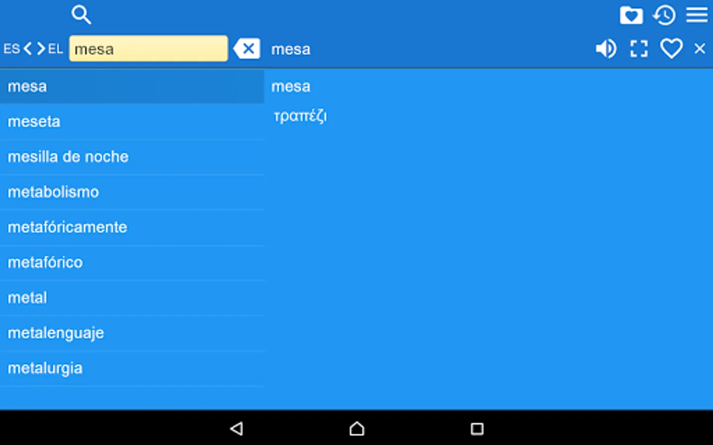This is Spanish Greek Dictionary (Diccionario Griego Español, Ισπανο-Ελληνικό λεξικό), containing 21000 translation articles. The Dictionary is OFFLINE and does not need the internet connection.