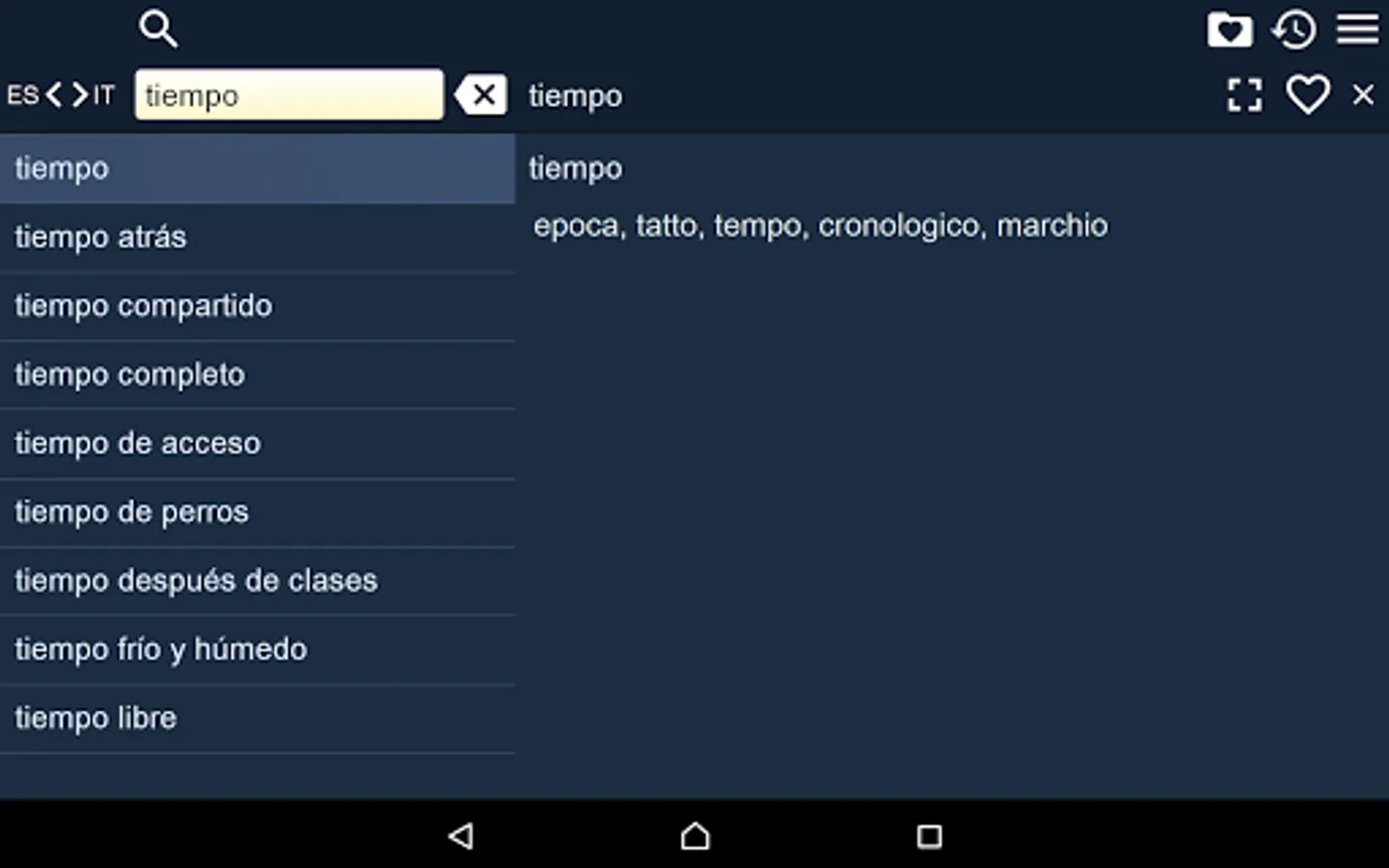 This is Spanish Italian Dictionary (Diccionario Italiano Español, Dizionario Spagnolo Italiano), containing 95000 translation articles. The Dictionary is OFFLINE and does not need the internet connection.