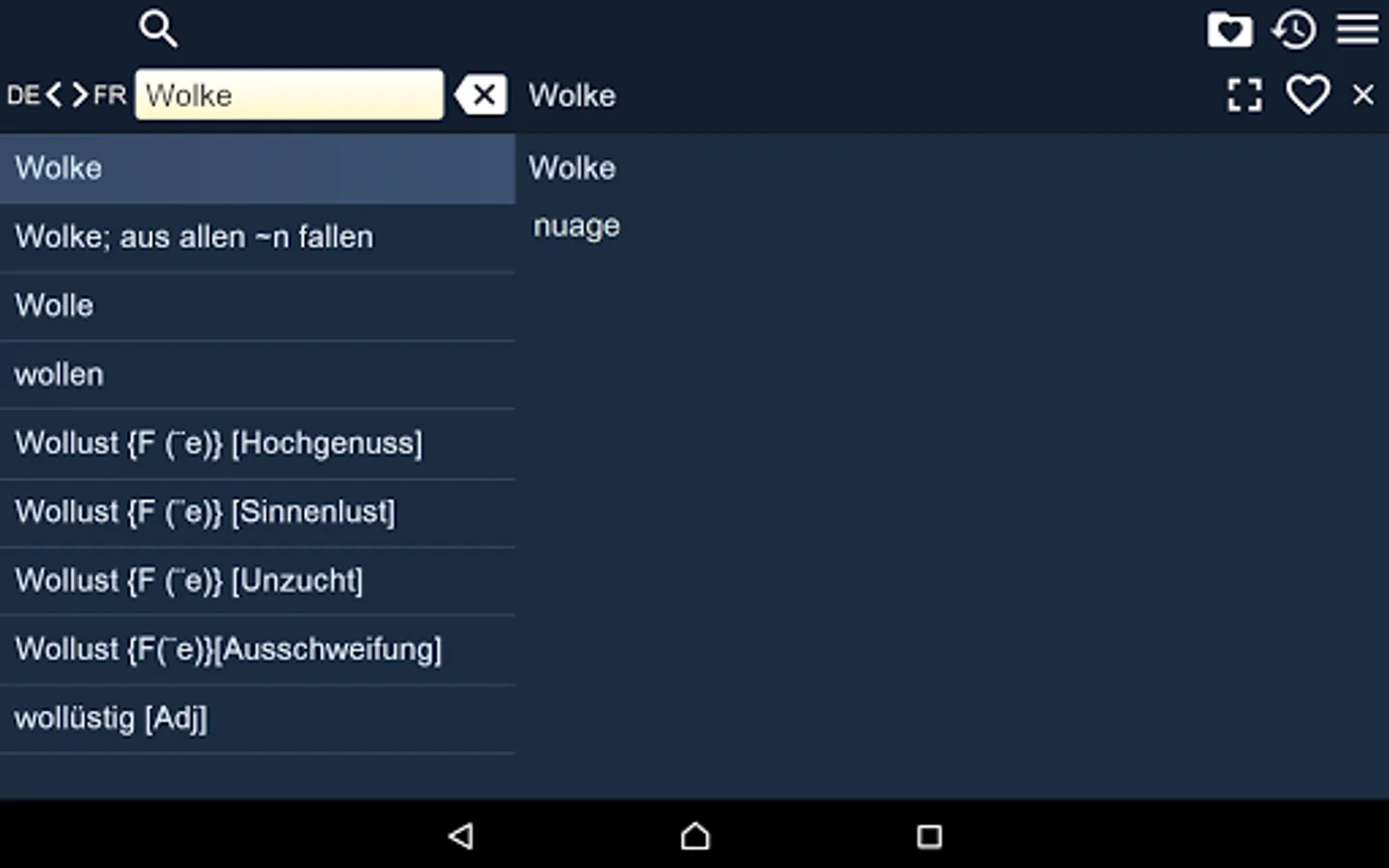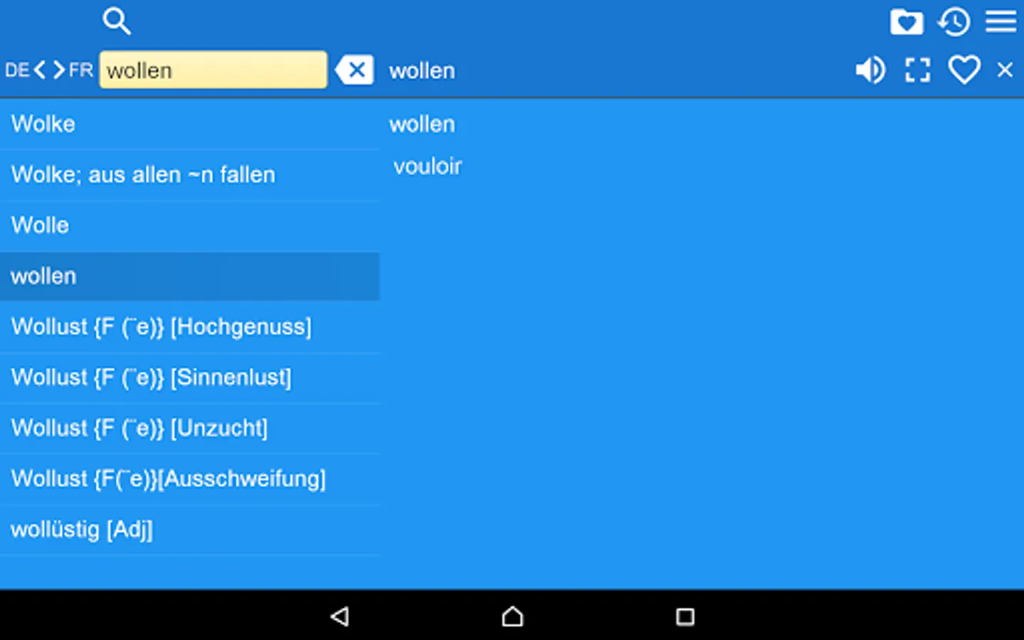 This is French German Dictionary (Französisch Deutsch Wörterbuch, Dictionnaire Allemand Français), containing 79000 translation articles. The Dictionary is OFFLINE and does not need the internet connection.