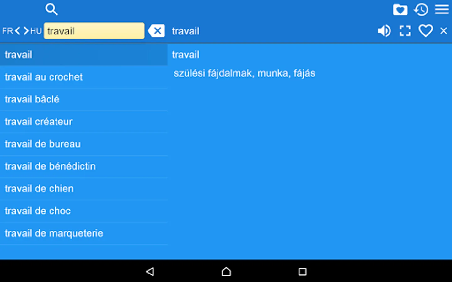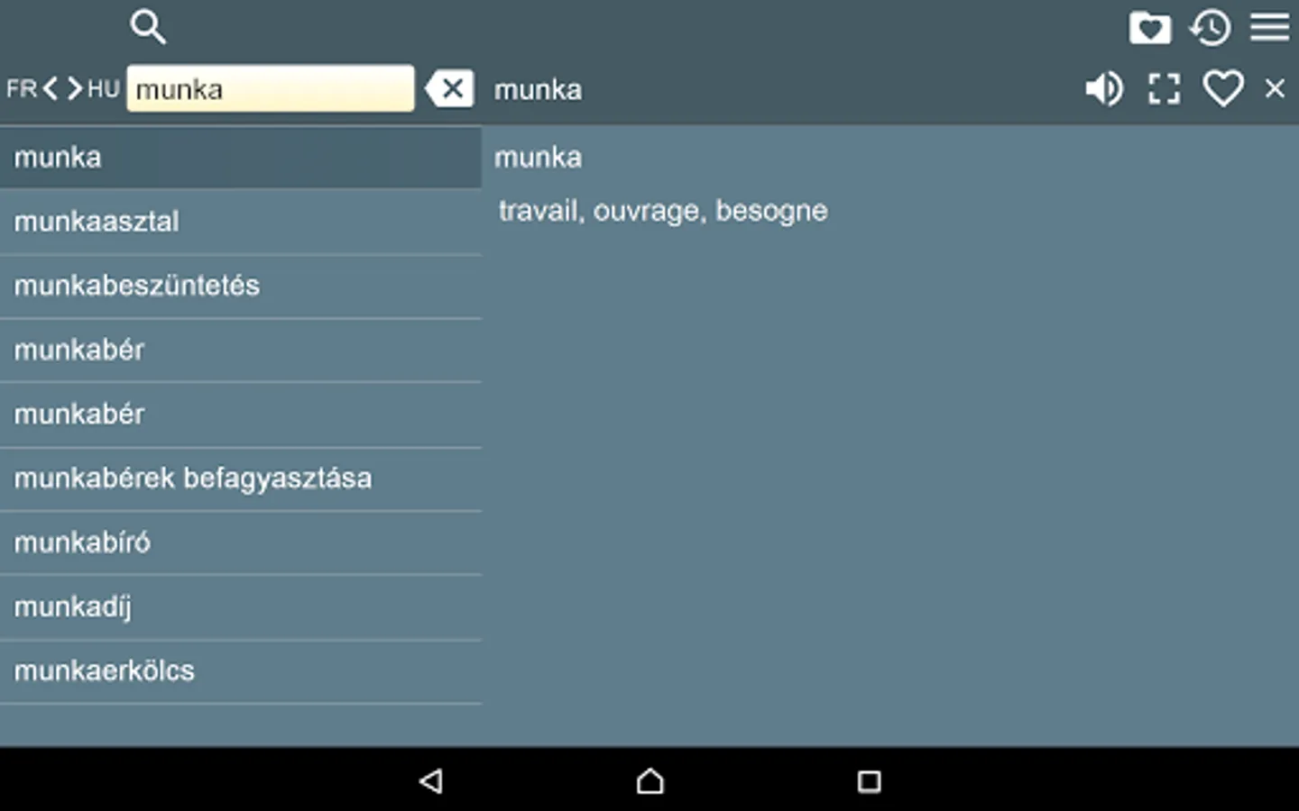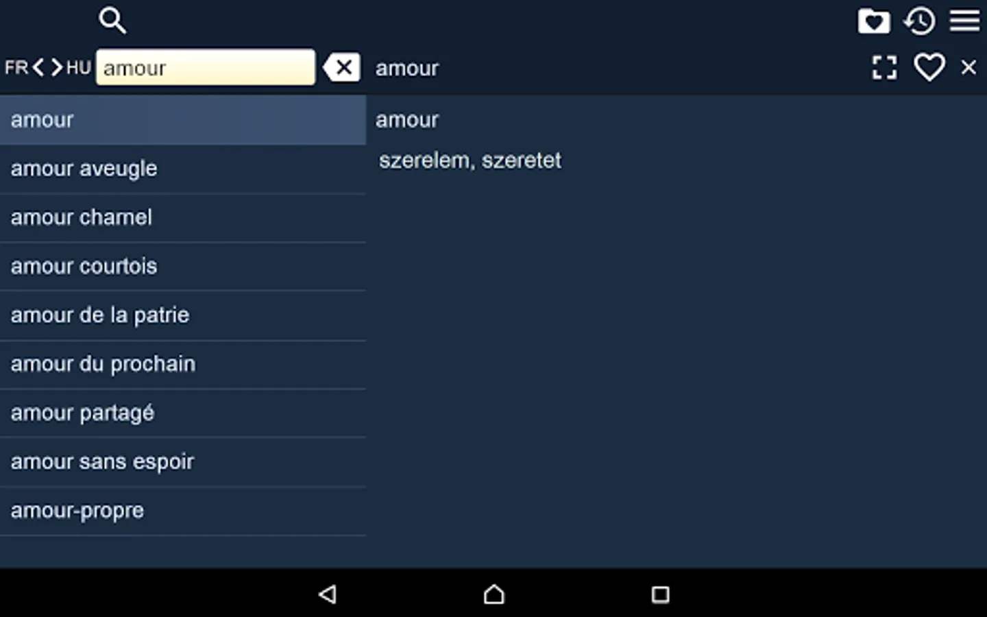 This is French Hungarian Dictionary (Dictionnaire Français Hongrois, Francia Magyar Szótár), containing 108000 translation articles. The Dictionary is OFFLINE and does not need the internet connection.