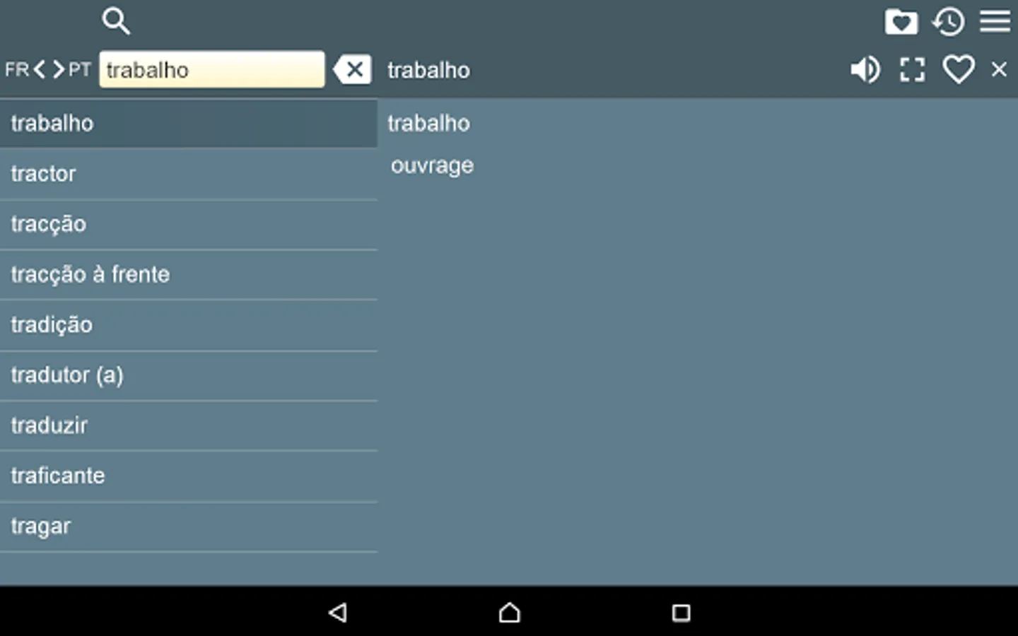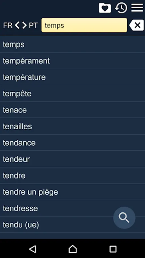 This is French - Portuguese Dictionary (Dictionnaire Français - Portugais, Dicionário Francês - Português), containing 21000 translation articles. The Dictionary is OFFLINE and does not need the internet connection.