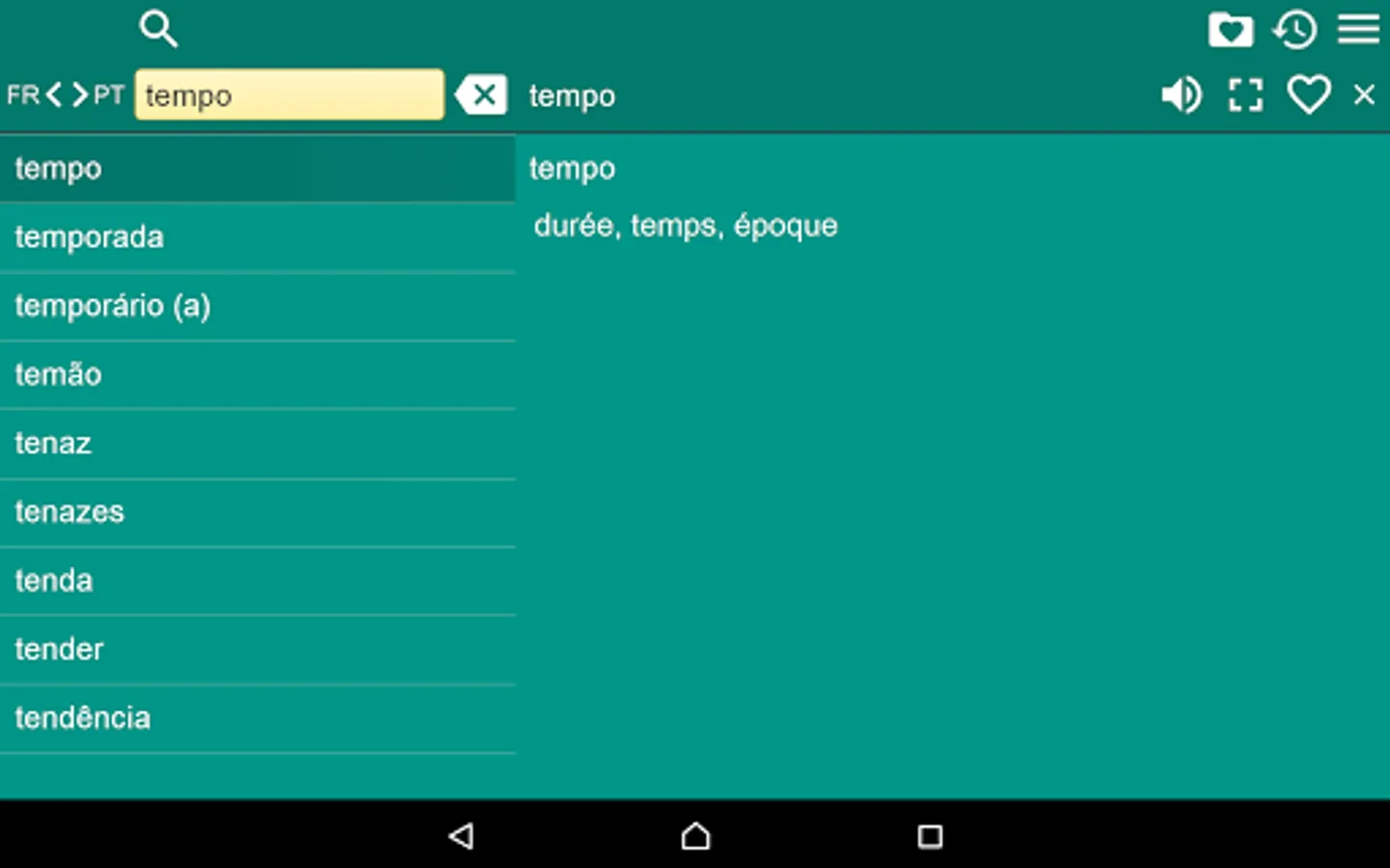 2. Favorites – you are able to add words to favorites list by clicking the “star” icon.