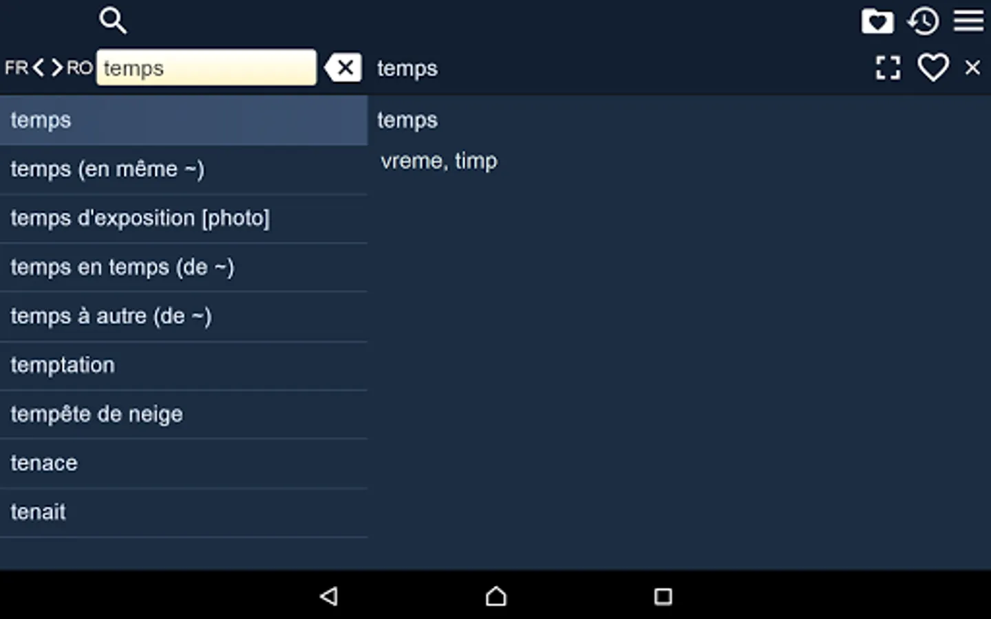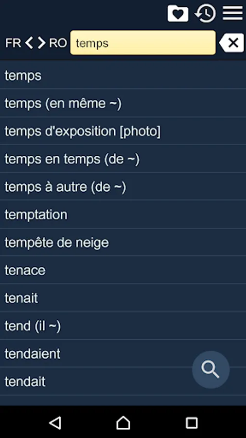 This is French Romanian Dictionary (Dictionnaire Français Roumain, Dicţionar Român-Francez), containing 48000 translation articles. The Dictionary is OFFLINE and does not need the internet connection.